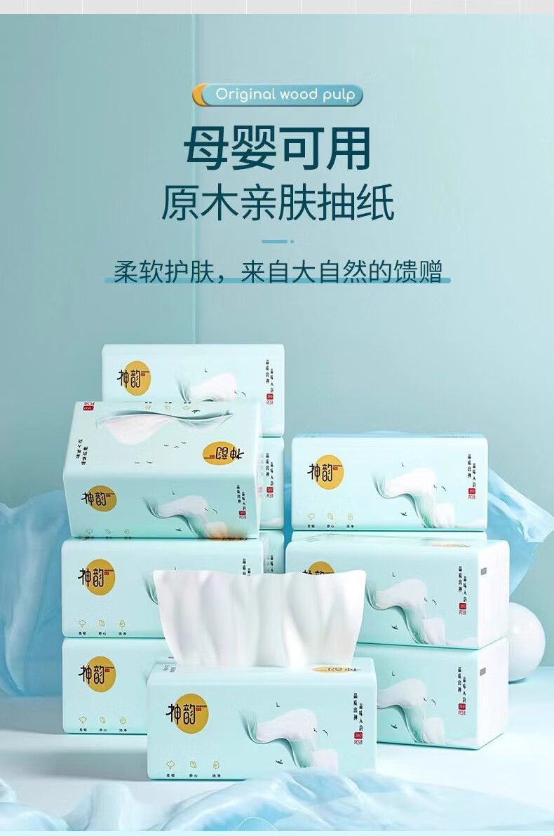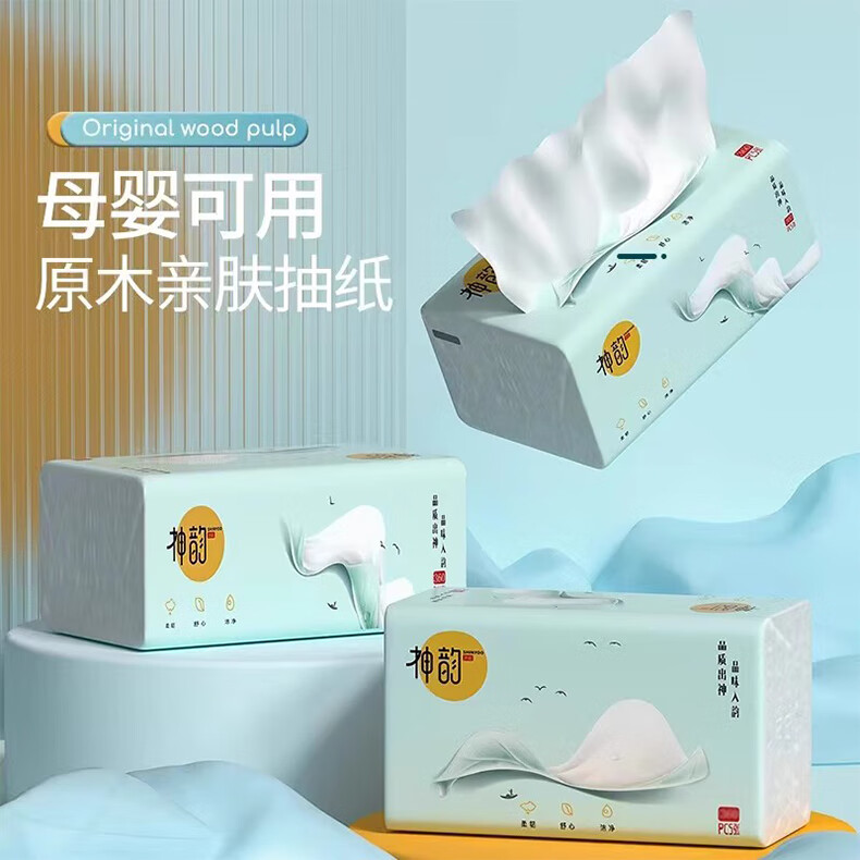神韵 1707+1691 水之韵4层原木抽纸面巾纸柔韧可湿水擦手纸400张/包 10包/提*5提(50包)