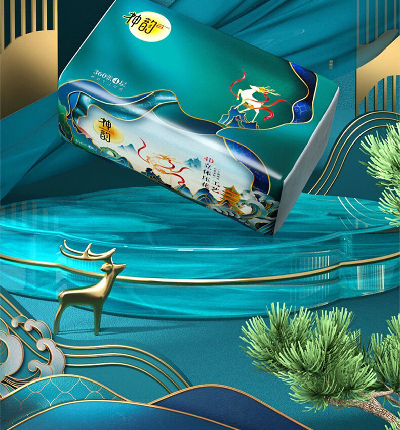 神韵 4945+4969 神韵立体美面巾纸360张4D压花4层10连包洗手间擦手纸*3提(30包)
