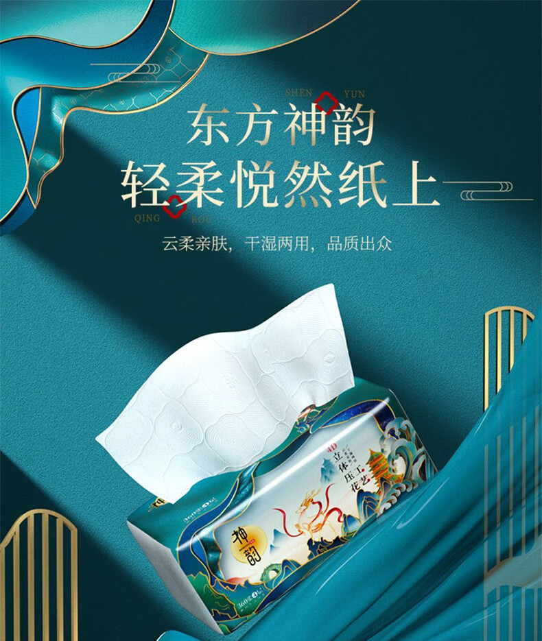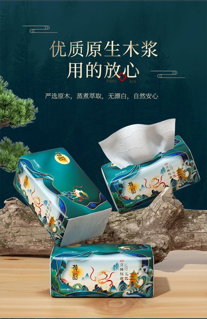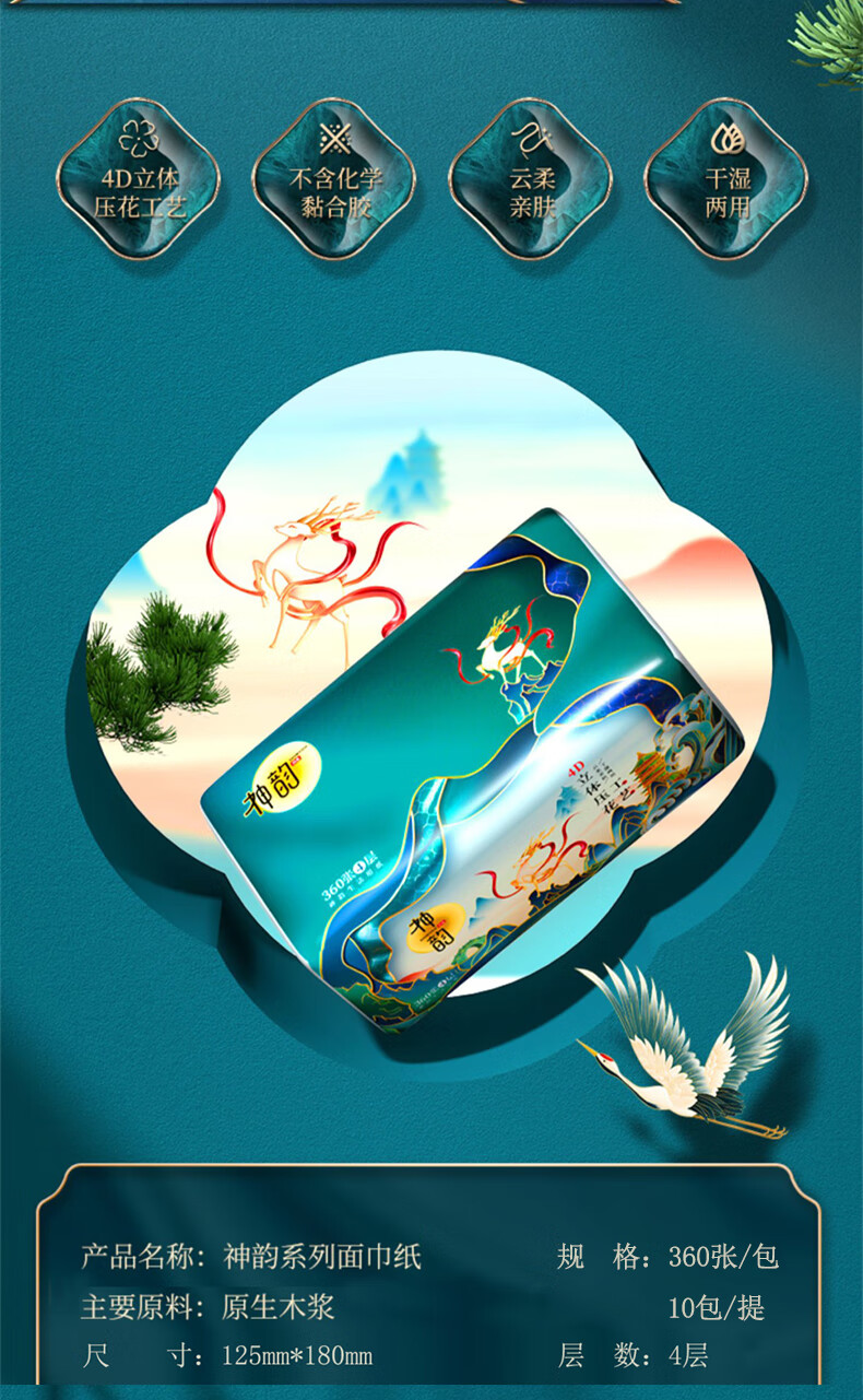 神韵 4945+4969 神韵立体美面巾纸360张4D压花4层10连包卫生纸洗手间擦手纸*5提(50包)