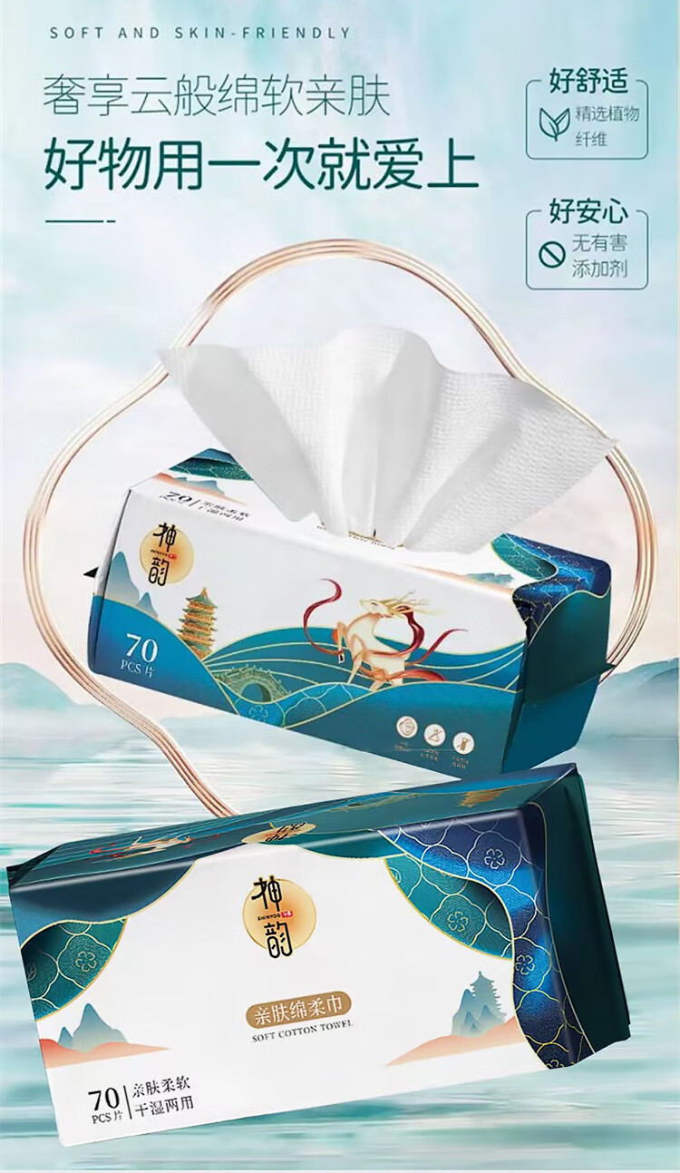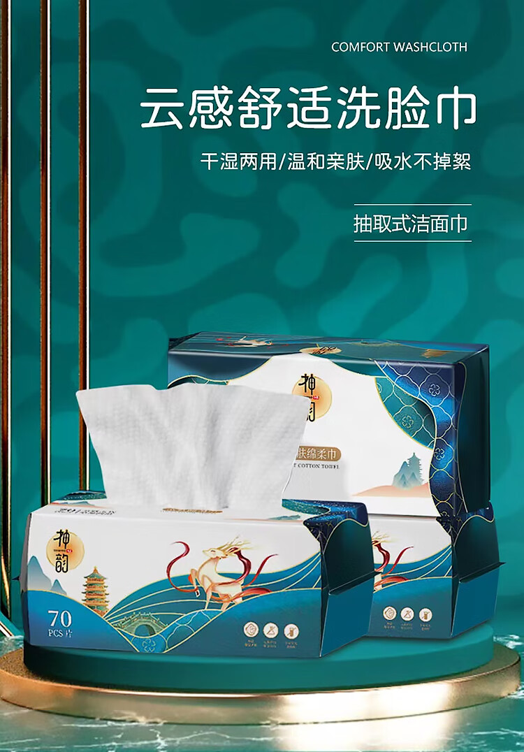 神韵 1813 加厚抽取式亲肤洁面巾干湿两用洗脸巾220克70片/包 200mm*200mm *10包
