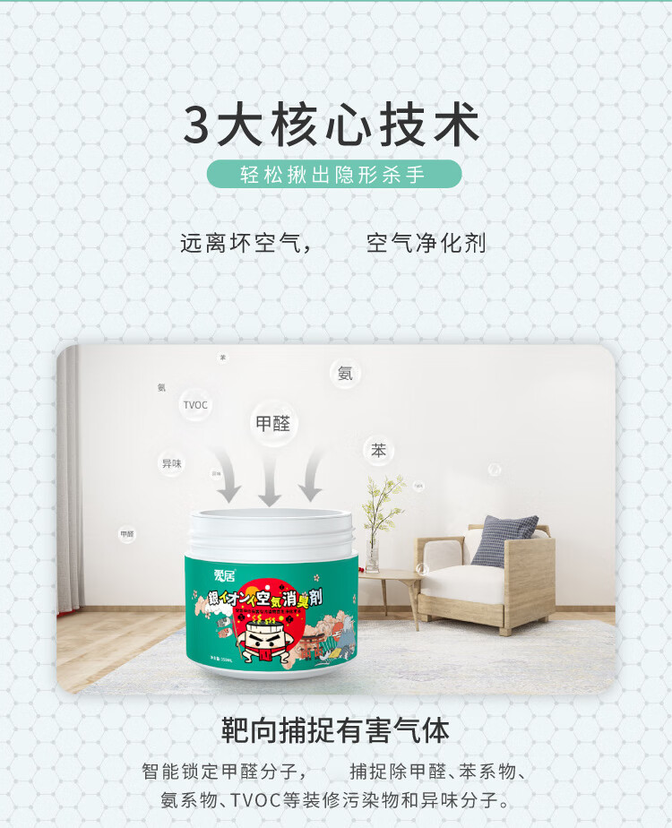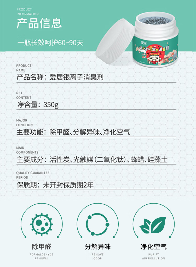 爱居 银离子除臭碳膏 350g 甲醛清除剂强力去除装修异味空气清新除甲醛活性碳膏 XG-350