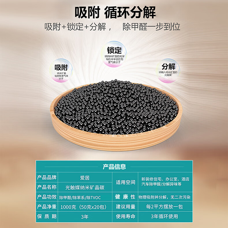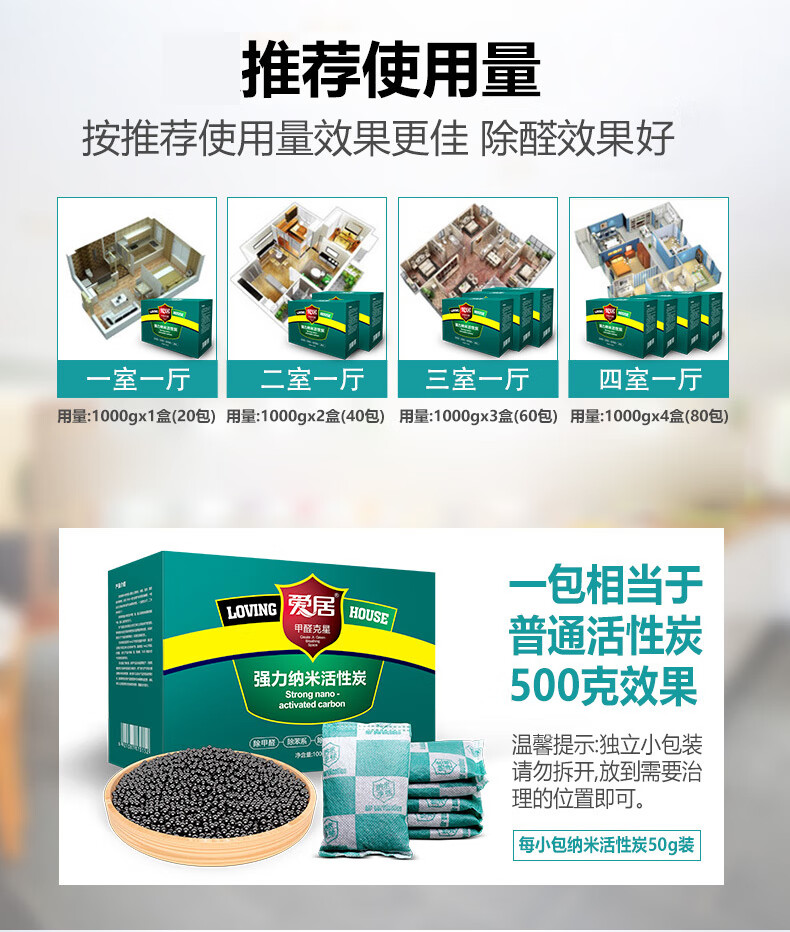 爱居 强力纳米矿晶 活性炭包除甲醛清除剂车用装修空气净化分解异味 50g*20包 JWB-1000