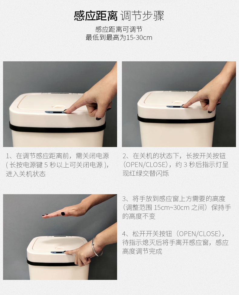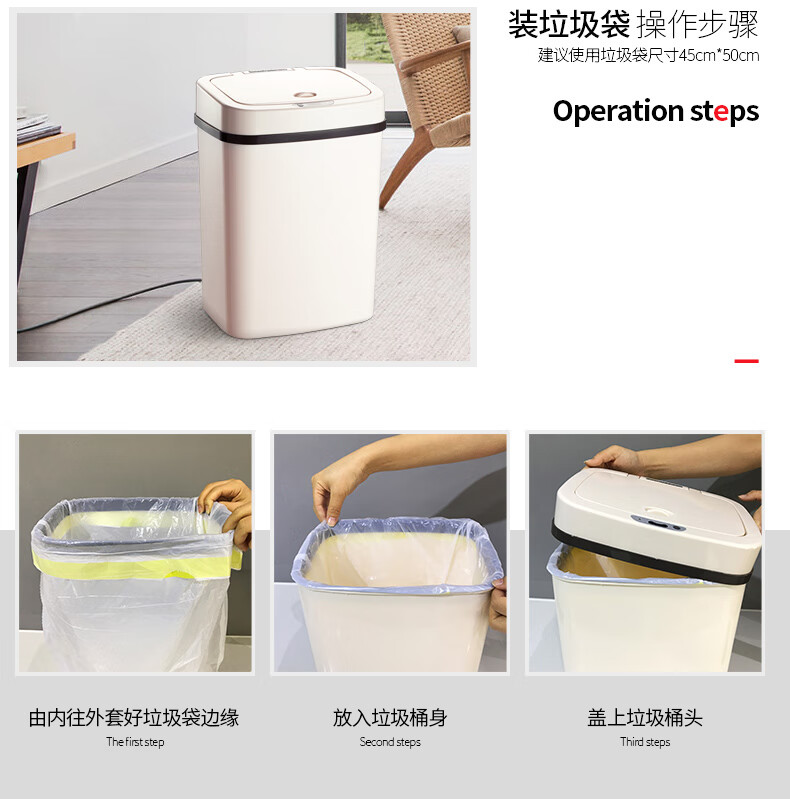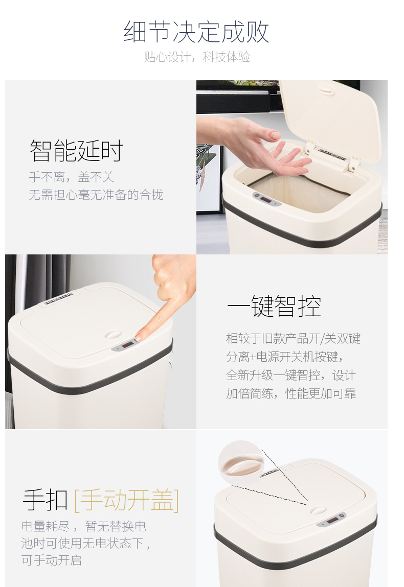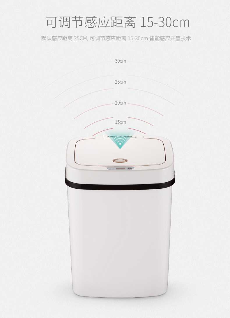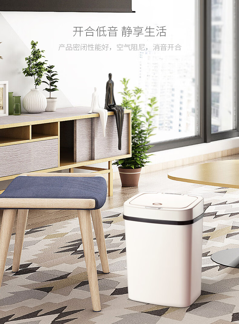 NST纳仕达DZT-12-5S 智能感应垃圾桶卧室客厅开盖大容量收纳桶 12L米白色+普通电池
