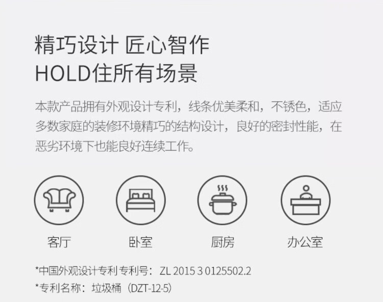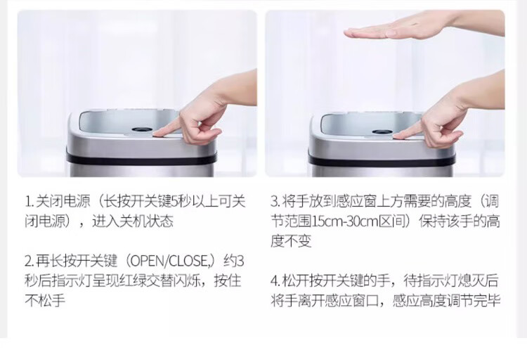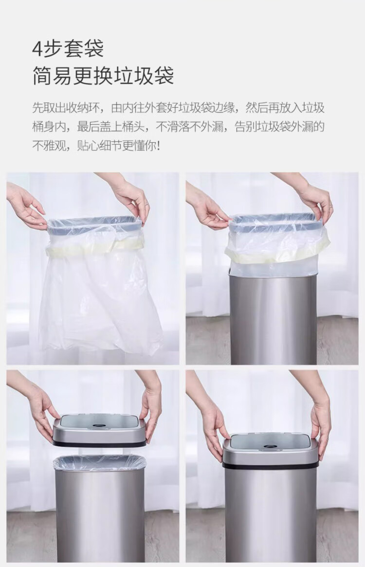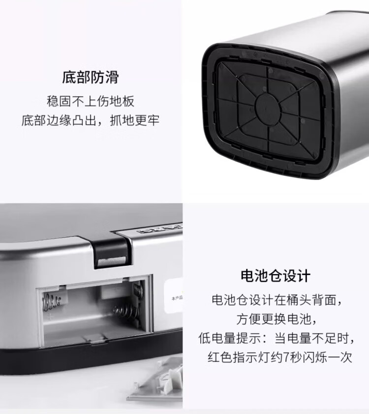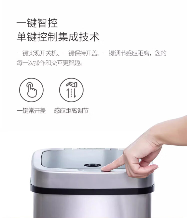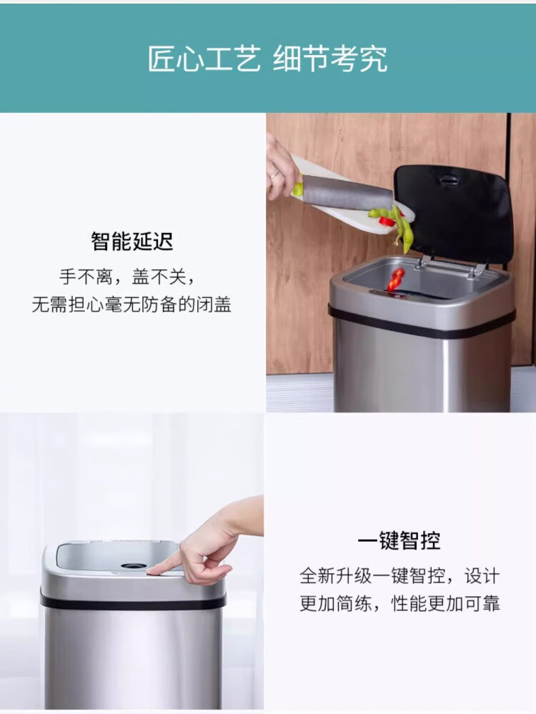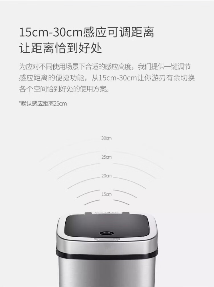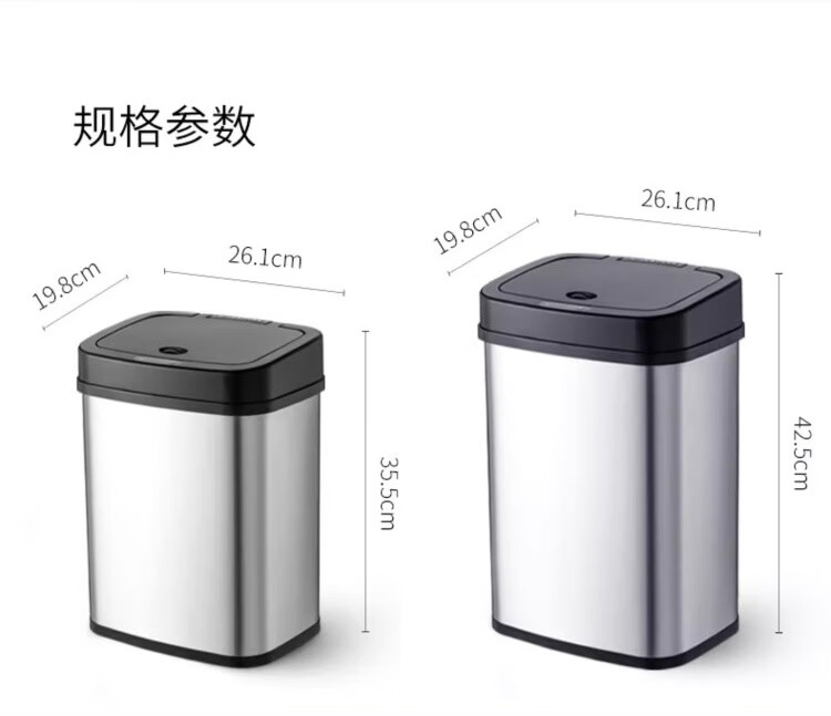 NINESTARS纳仕达 DZT-15-5 智能感应垃圾桶 防水级 全自动卫家办公室卧室客厅宿舍纸篓桶夹缝电池款 经典色 15L