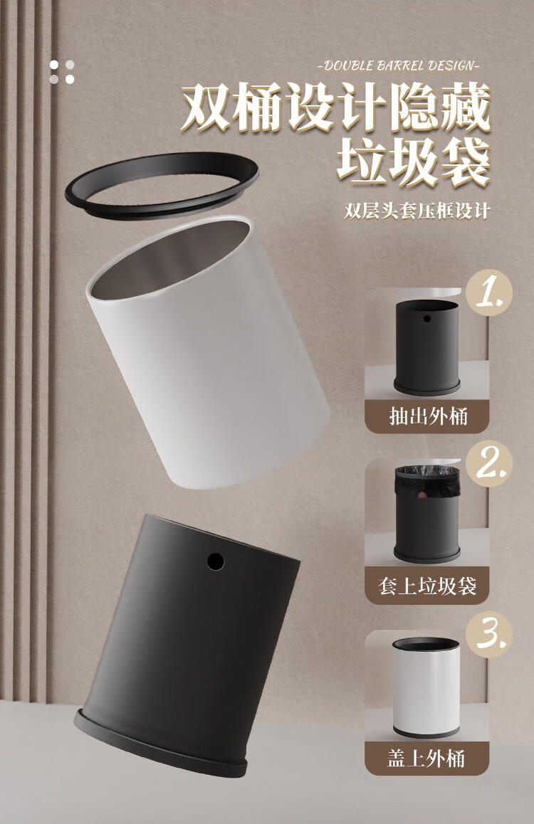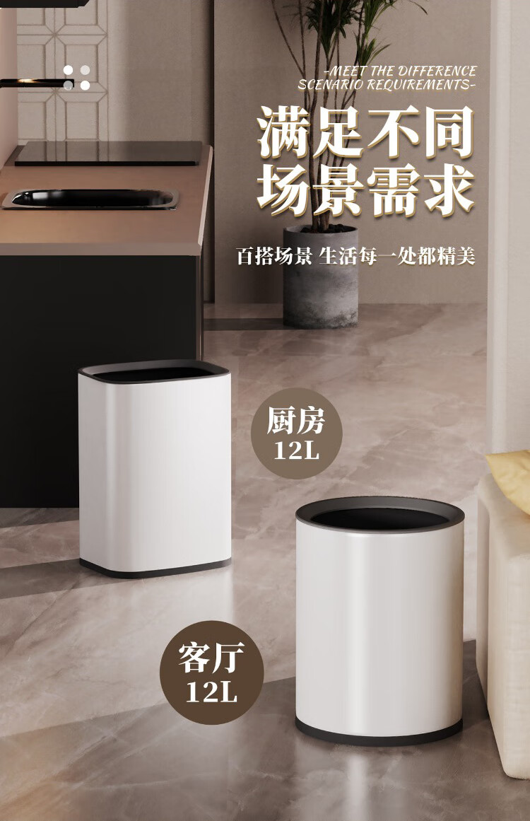 家尚嘉JASJA F5 不锈钢双层垃圾桶 轻奢双桶酒店办公室家卧室卫生间 方形 香槟金 12L