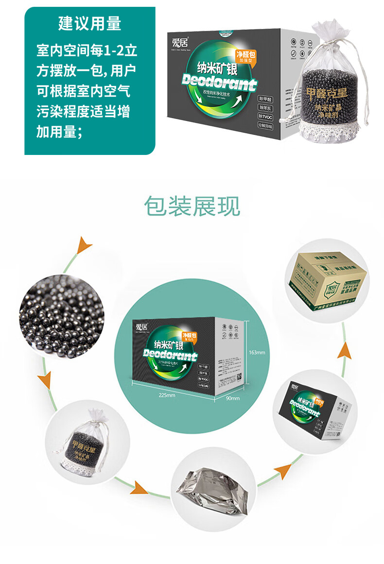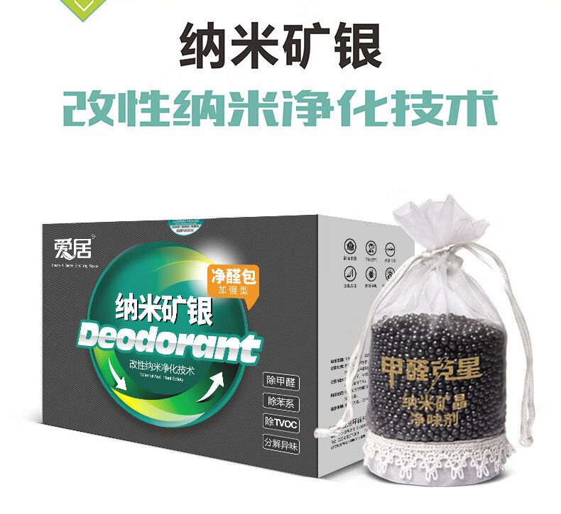 爱居 纳米矿银净醛包(250g*2) 纳米矿晶活性炭包新车专用车内分解甲醛去异味颗粒 NMY-2
