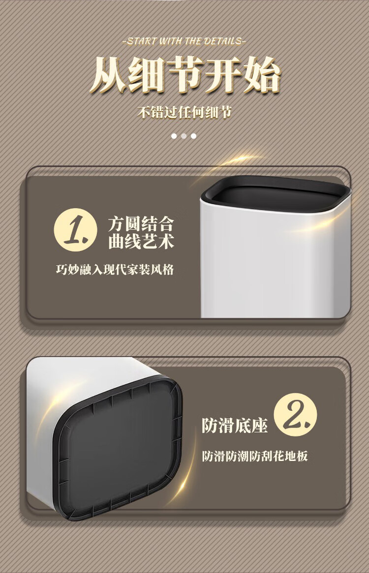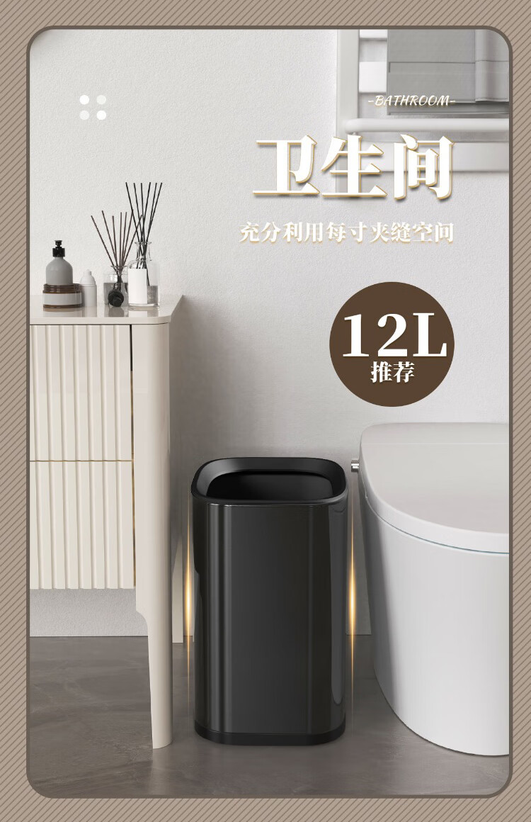 家尚嘉JASJA F5 不锈钢双层垃圾桶 轻奢双桶 酒店办公室家卧室客厅 方形 玉石黑 12L
