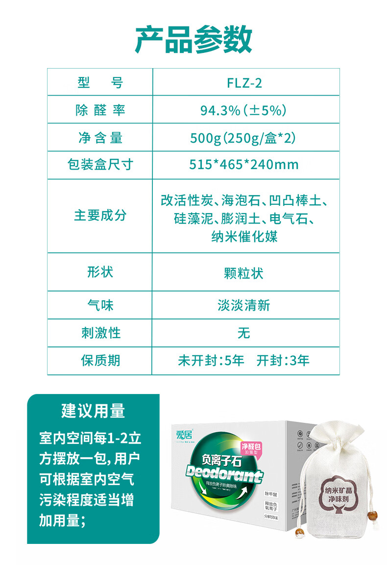 爱居 负离子石净醛包(250g*2) 活性炭去除甲醛新房装修分解异味甲醛负离子石颗粒 FLZ-2