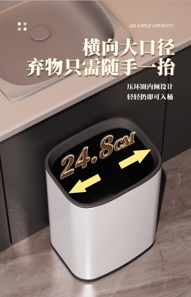 家尚嘉JASJA F6 不锈钢双层垃圾桶 酒店办公室卧室厨房桶 圆形 玉石黑 12L