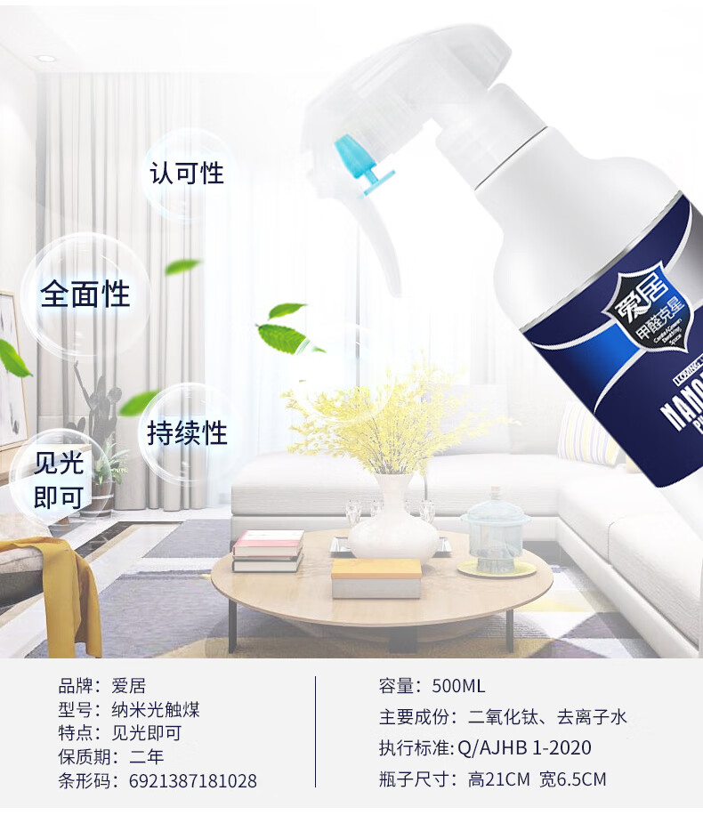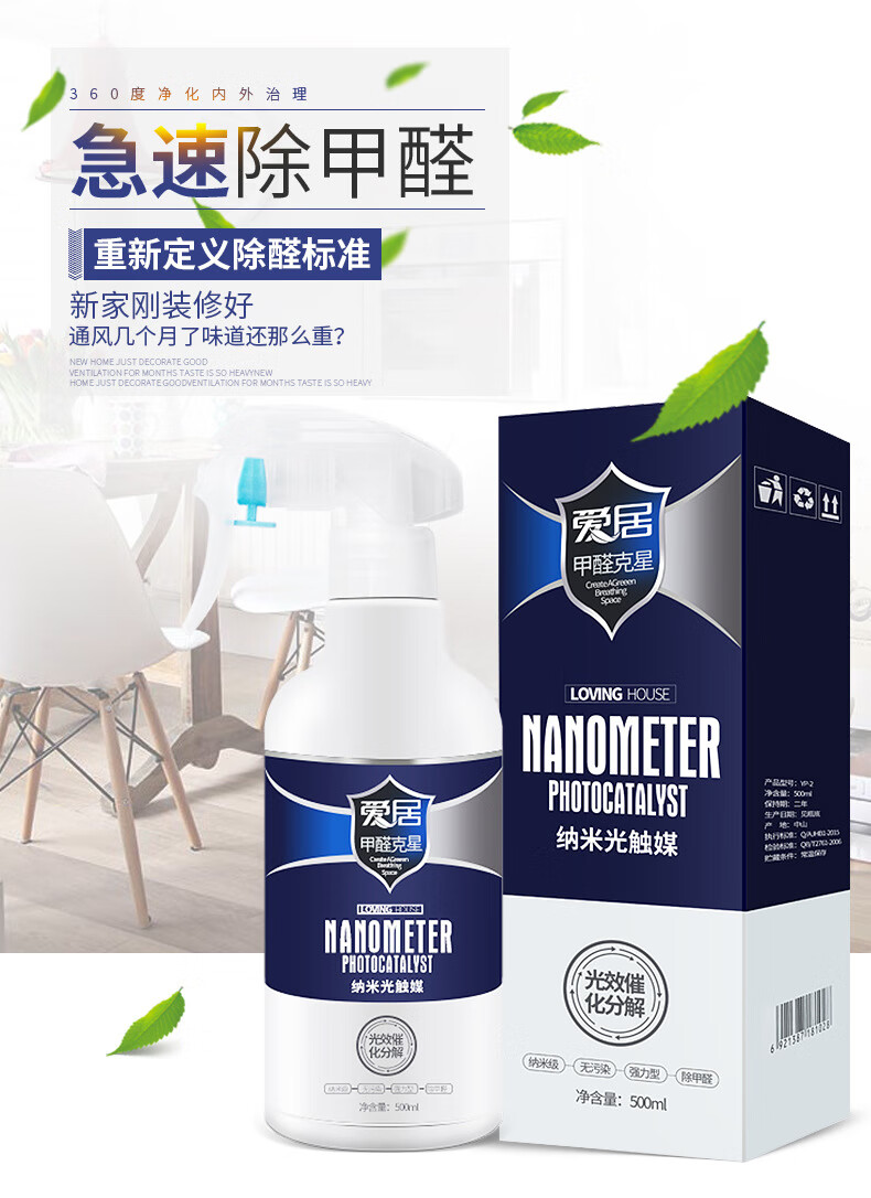 爱居 纳米光触媒喷剂 500ml 除甲醛清除剂喷剂去除装修异味净化空气 YP-2