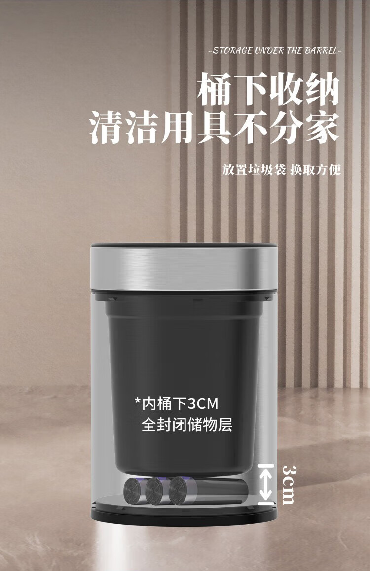 家尚嘉JASJA DK236-10 不锈钢垃圾桶 办公室酒店客厅卫生间双层桶 圆形 玉石黑 10L