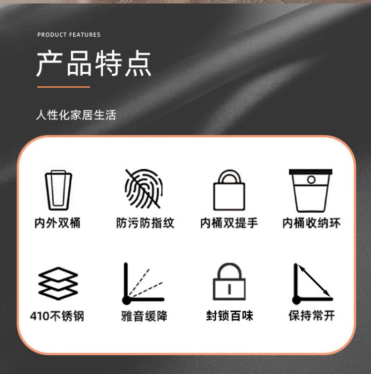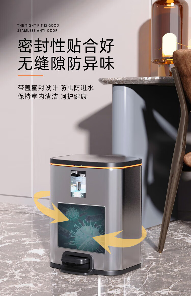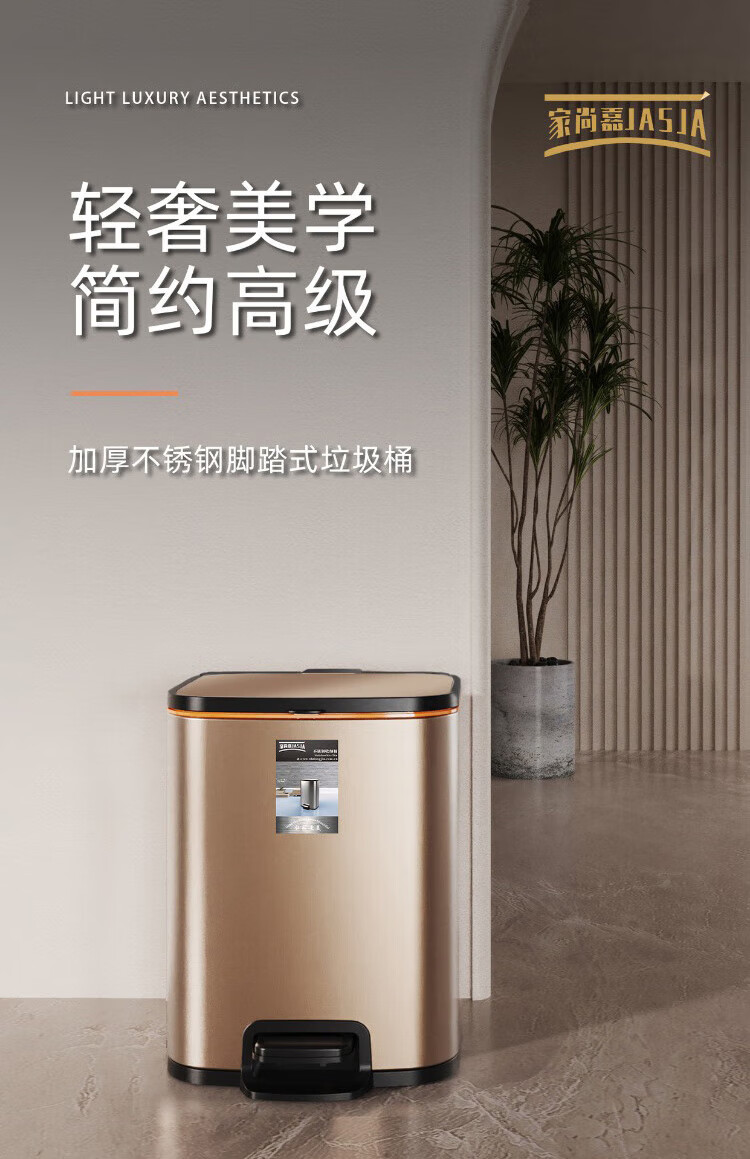 家尚嘉JASJA DF248-06 410不锈钢脚踏垃圾桶 商用酒店办公室客厅带盖双层桶 方形 砂纹银 6L