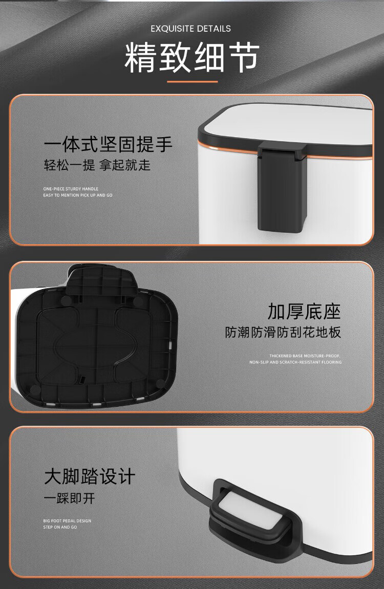 家尚嘉JASJA DF248-06 不锈钢脚踏垃圾桶 商用酒店办公室客厅带盖双层桶 方形 香槟金 6L