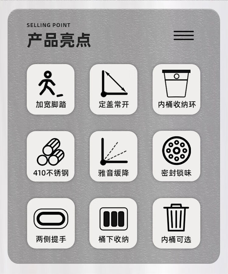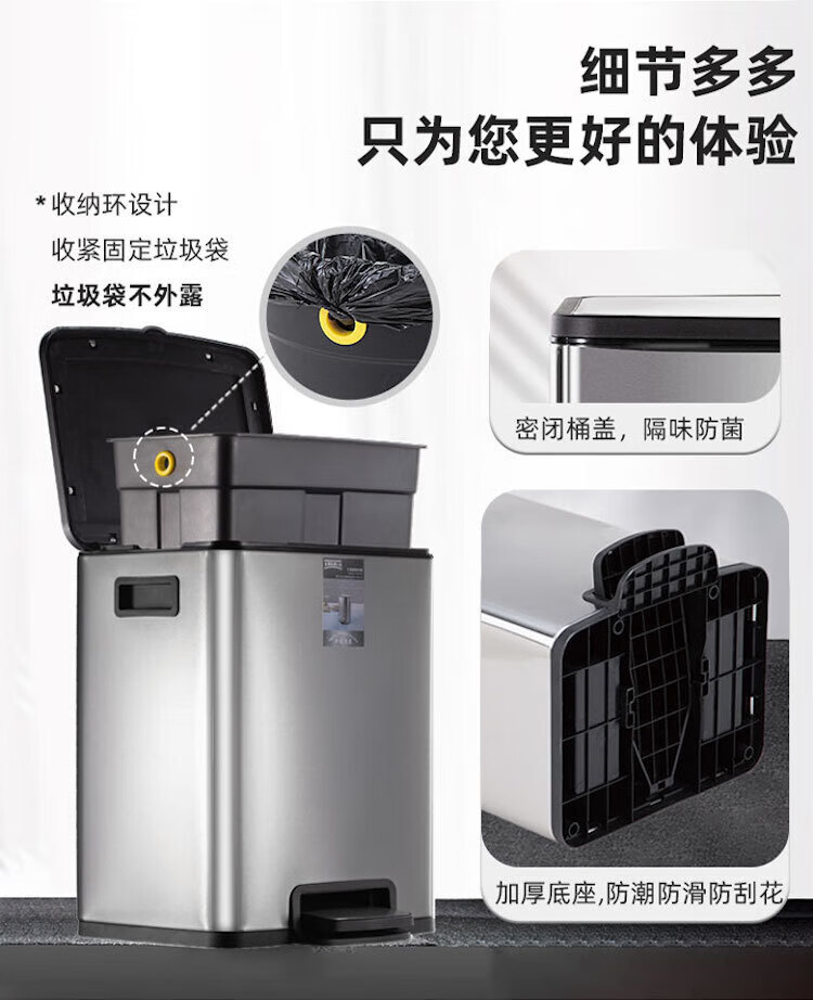 家尚嘉JASJA DF320A-20L 不锈钢脚踏垃圾桶 大容量客厅办公室加厚双层桶 方形 香槟金20L