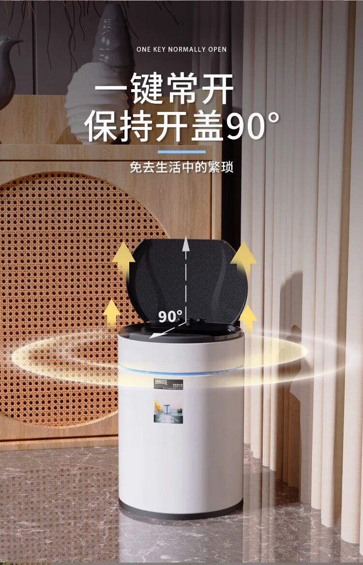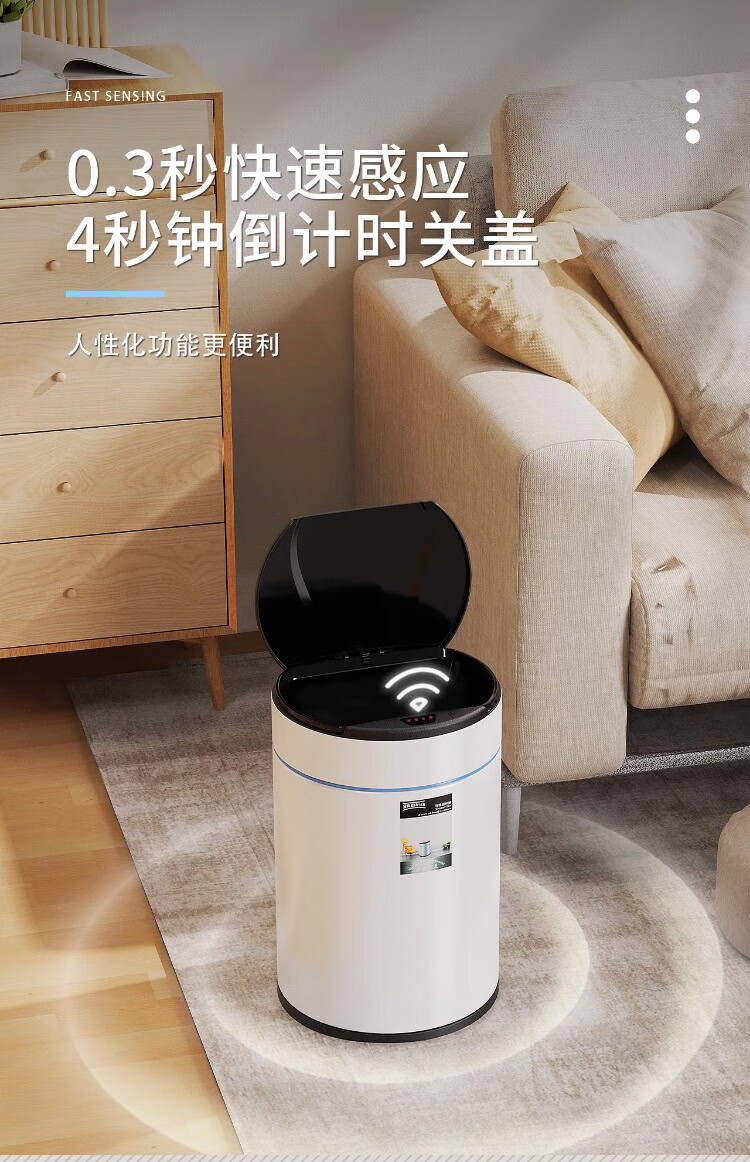 家尚嘉JASJA DG236-06 智能感应不锈钢垃圾桶 商用酒店办公室客厅自动翻盖双层桶 圆形 黑色6L
