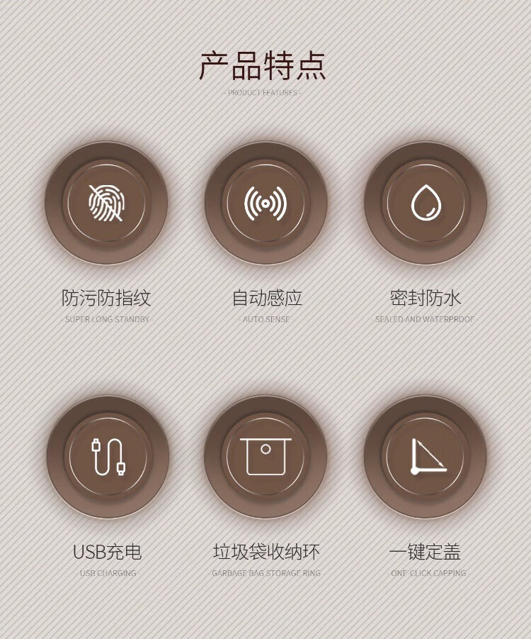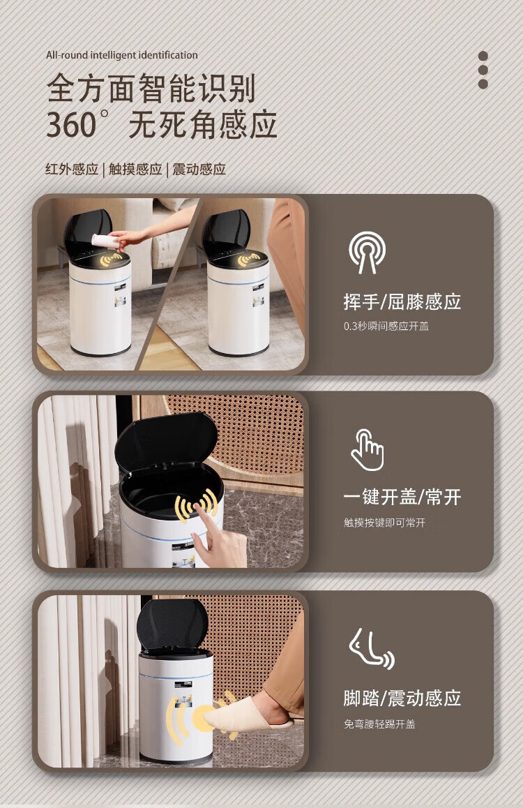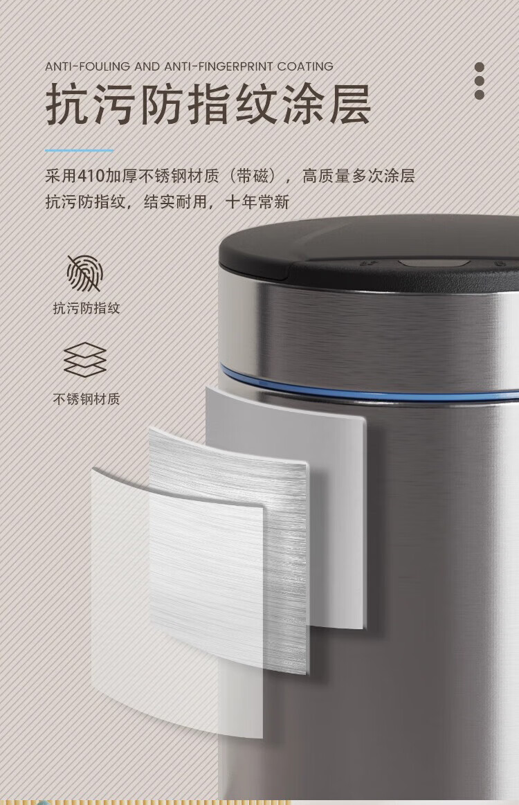 家尚嘉JASJA DG236-10 智能感应不锈钢垃圾桶 商用酒店办公室客厅自动翻盖双层桶 圆形 银色10L