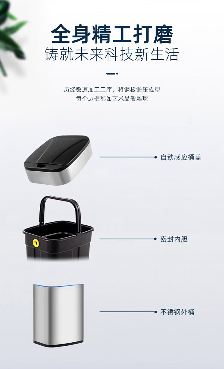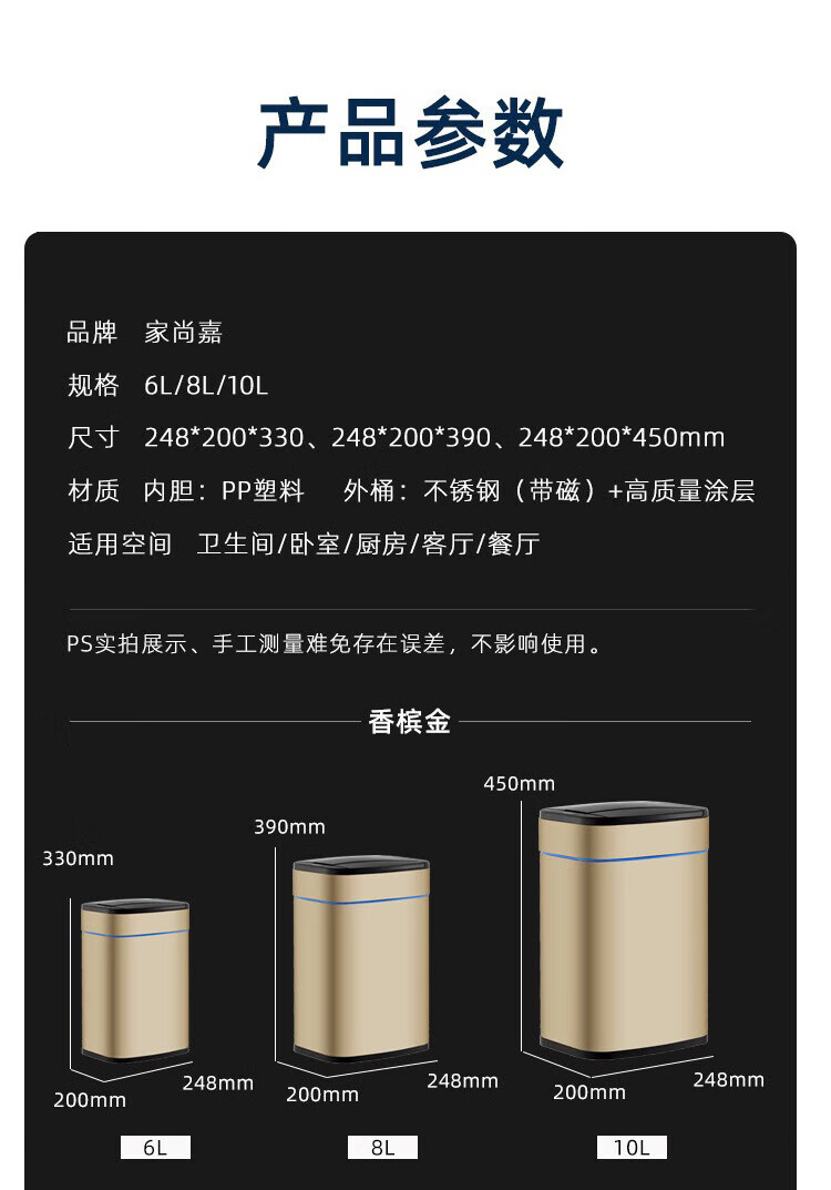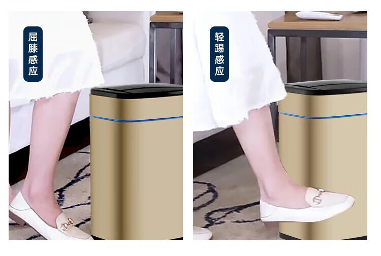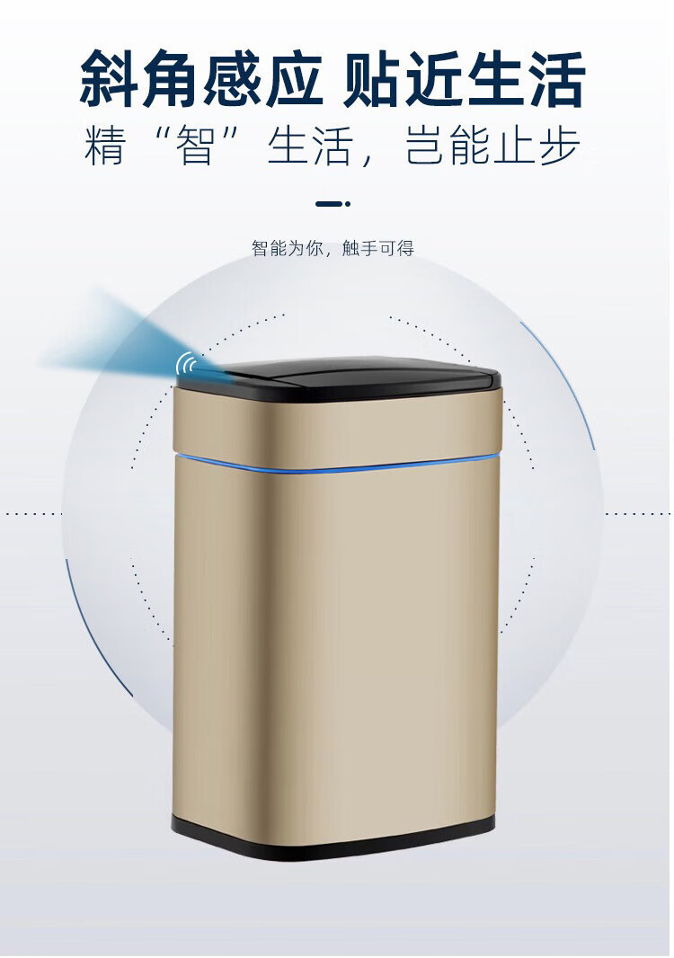 家尚嘉JASJA DG248-06 智能感应不锈钢垃圾桶 商用酒店办公室客厅自动翻盖垃圾桶 方形 金色6L