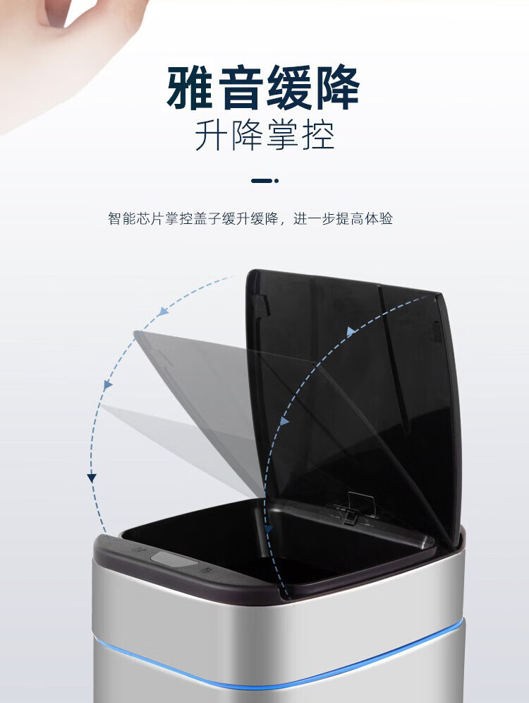 家尚嘉JASJA DG248-06 智能感应不锈钢垃圾桶 商用酒店办公室客厅自动翻盖垃圾桶 方形 银色6L