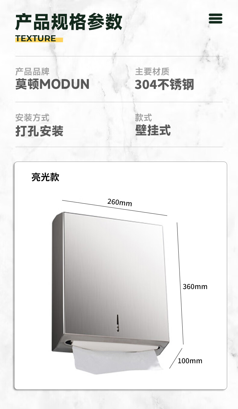 莫顿 擦手纸盒 304不锈钢亮光 M-5821