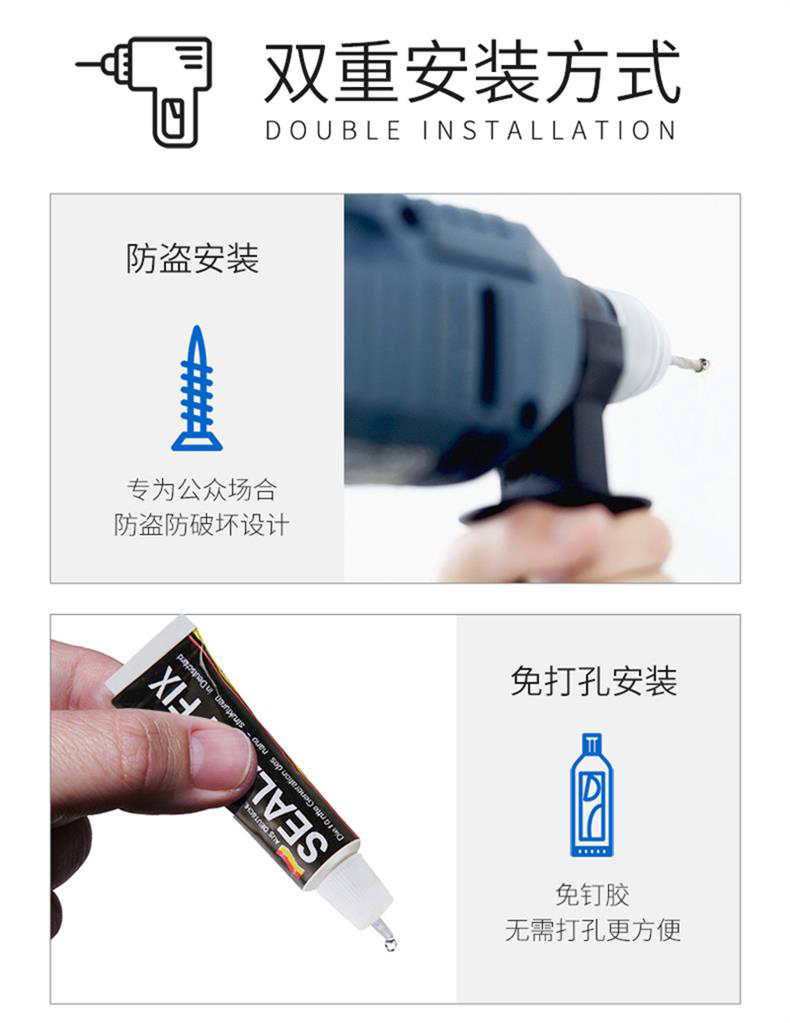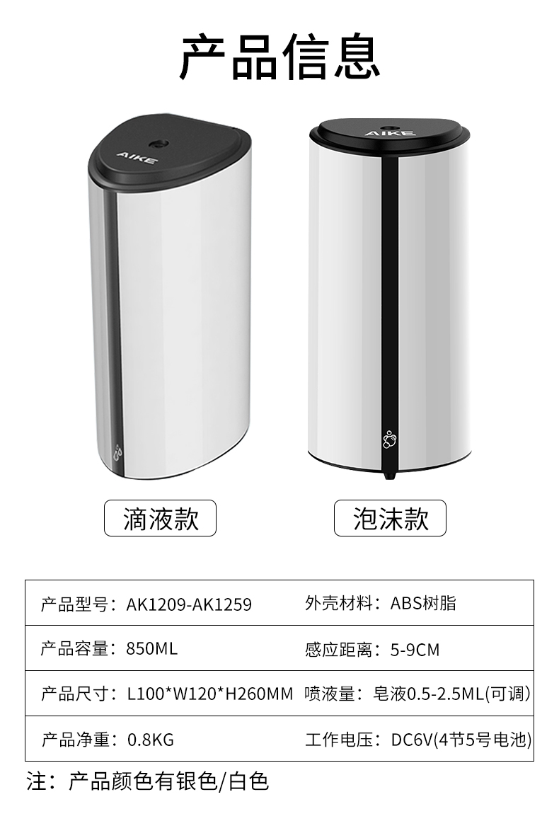 艾克(AIKE)AK1209皂液器 壁挂式自动感应手部消毒器免接触免打孔皂液器 银色(滴液款)