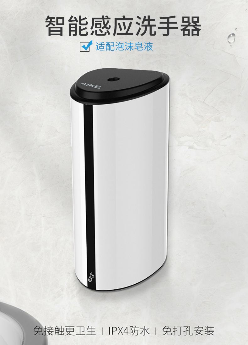 艾克(AIKE)AK1259 皂液器 壁挂式感应手部消毒器免接触免打孔皂液器 白色(泡沫款)