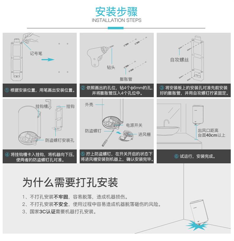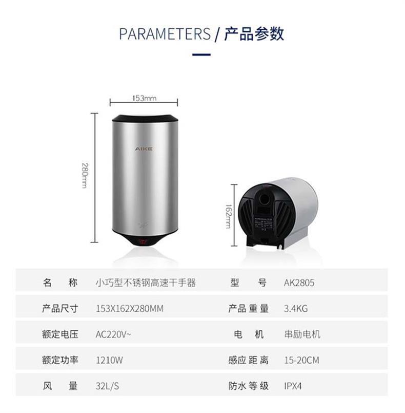 艾克(AIKE)AK2805 不锈钢烘手器 自动感应烘手机酒店干手器厕所干手机 不锈钢抛光