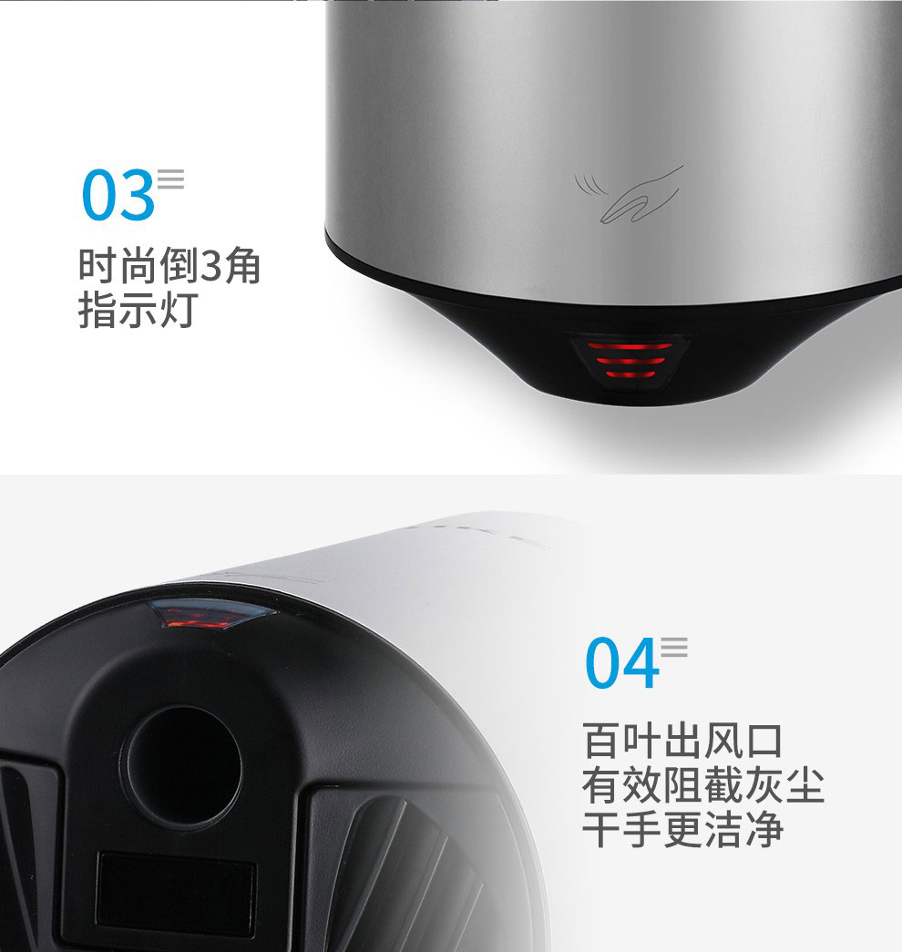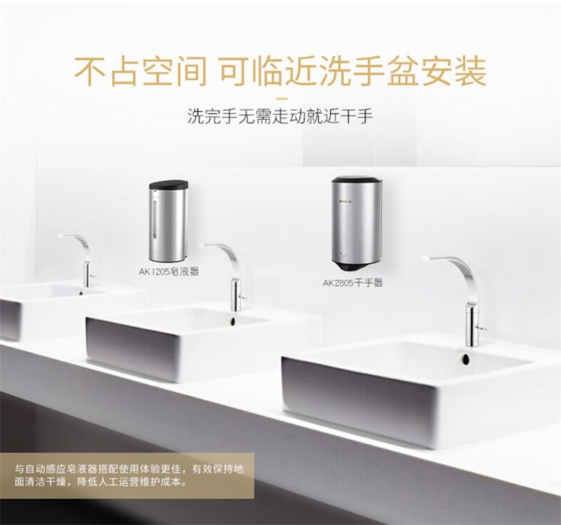 艾克(AIKE)AK2805 不锈钢烘手器 自动感应烘手机酒店卫生间干手器 不锈钢黑色