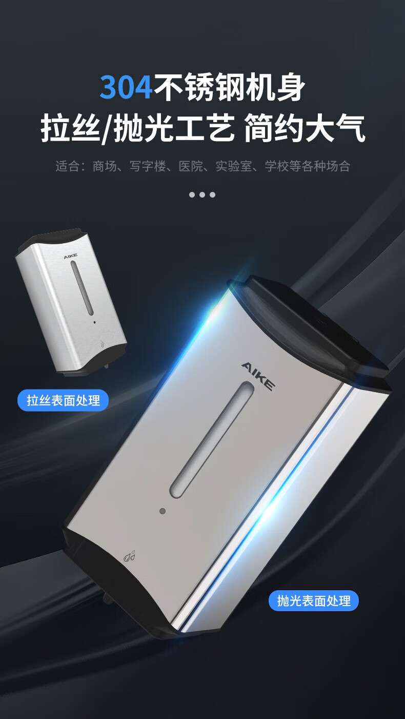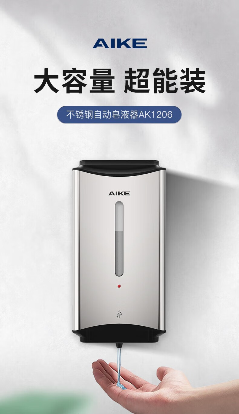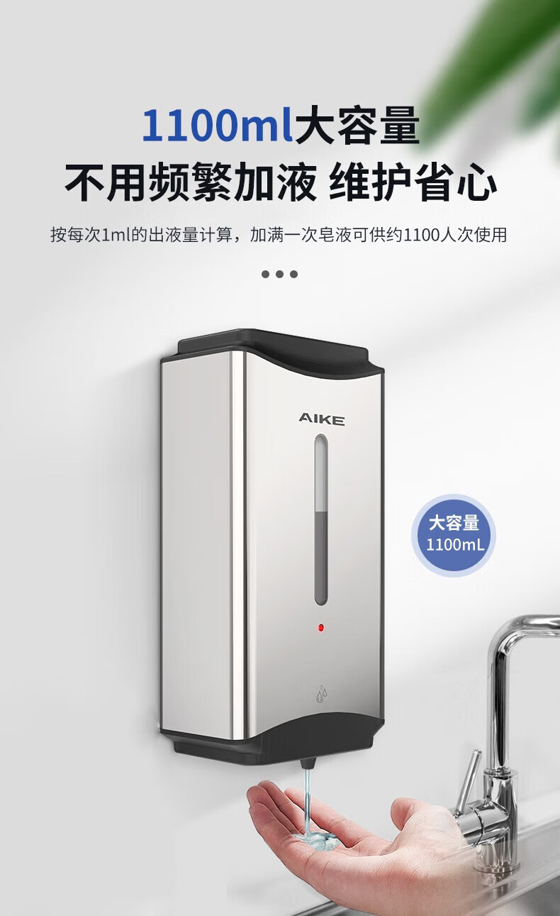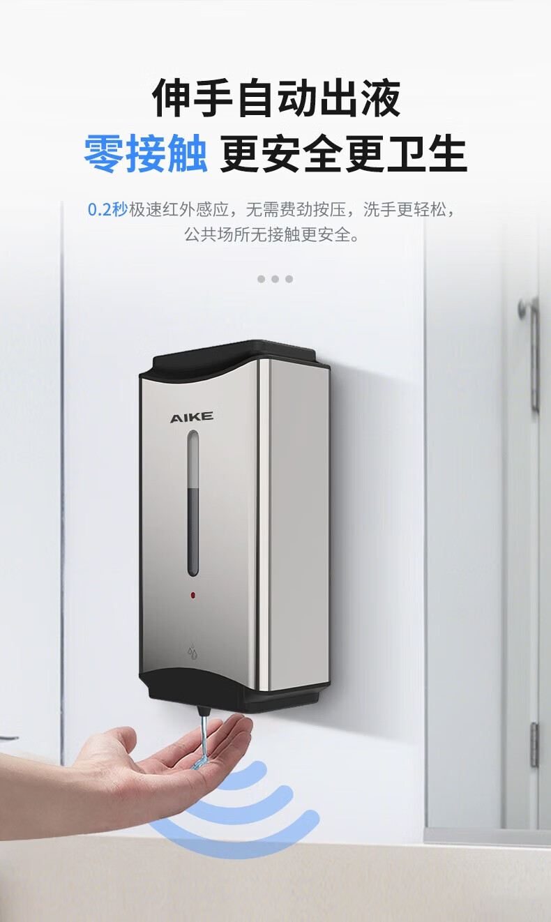 艾克(AIKE)AK1206 不锈钢皂液器 感应洗手液器 商场用卫生间厨房餐厅壁挂式自动洗手液机免打孔皂液盒 抛光
