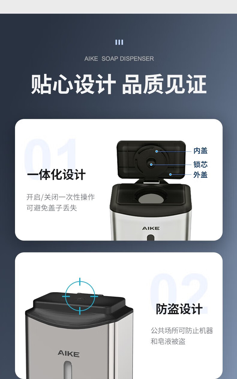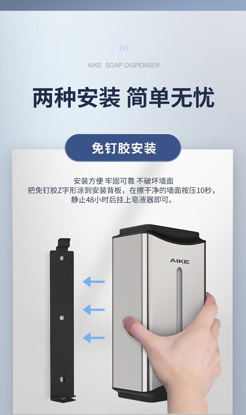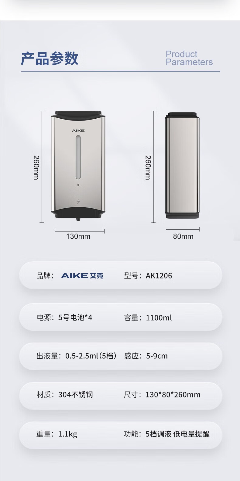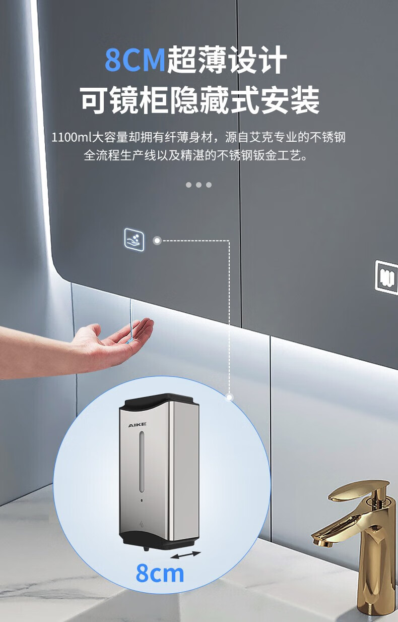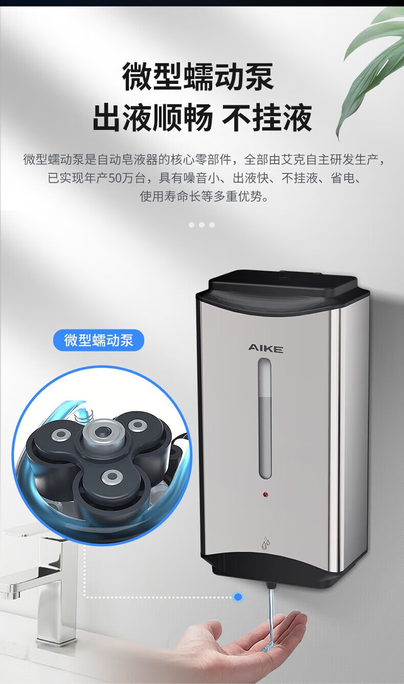 艾克(AIKE)AK1206 不锈钢皂液器 感应洗手液器 商场用卫生间厨房餐厅壁挂式自动洗手液机免打孔皂液盒 抛光