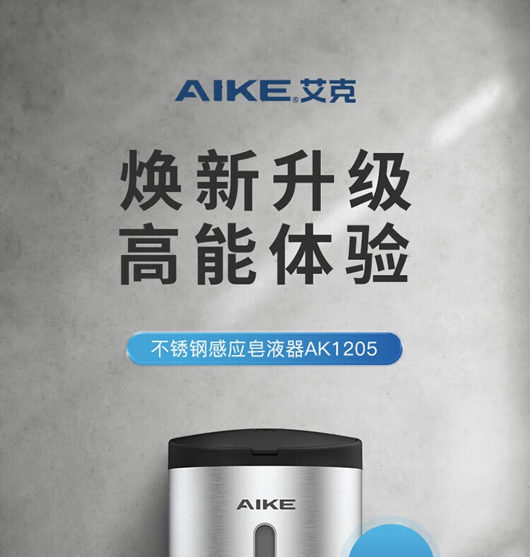 艾克(AIKE)AK1205 不锈钢感应洗手液器 自动感应出液皂液器洗手液 家商用卫生间餐厅洗手台壁挂免打孔 拉丝银