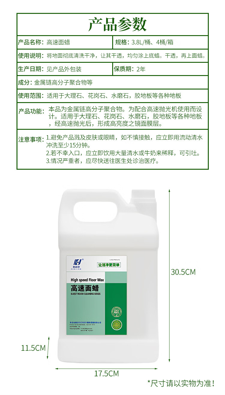 科洁尔 LG-220 高速面蜡 3.8L酒店宾馆商场物业地面大理石地板抛光增亮清洁 4桶/箱
