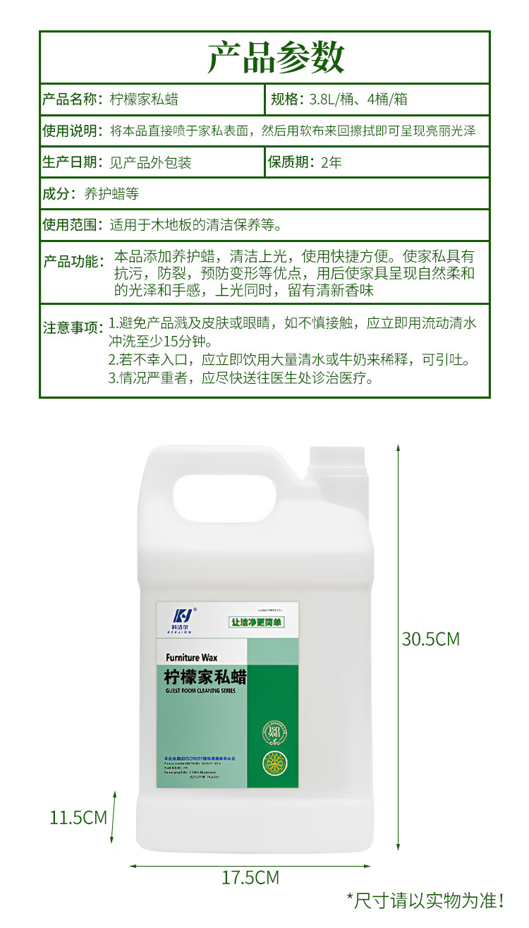 科洁尔 LG-222 柠檬家私蜡 酒店宾馆房间木地板清洁抛光打蜡保养清香 3.8L/桶