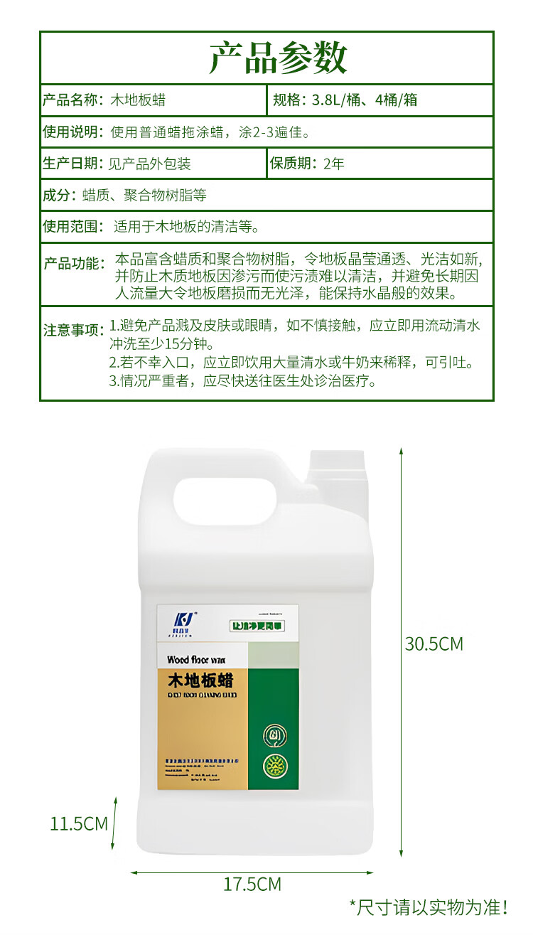 科洁尔 LG-224 木地板蜡 酒店宾馆民宿木地板清洁去污增光抗污地板蜡 3.8L/桶