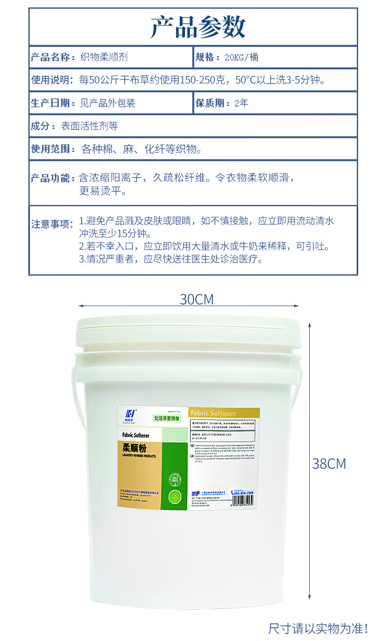 科洁尔 LG-117 织物柔顺剂 衣物洗护大桶装洗衣房酒店宾馆布草清洗留香 20kg/桶