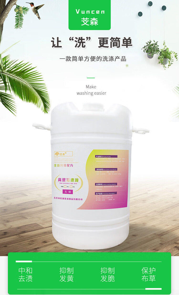 芠森 BR216 彩漂液 工业洗衣液白色彩色衣物通用去渍去黄去污酒店宾馆 60L/桶
