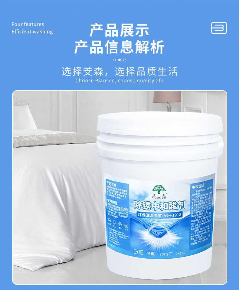 芠森 BR219 除锈中和酸剂 布草去黄中和酸剂酒店宾馆洗衣房 20kg/桶