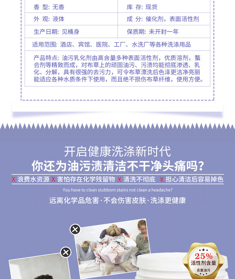 芠森 BR221 油污乳化剂 餐厅桌布油污清洗剂酒店水洗厂干洗店台布清洗剂 20kg/桶