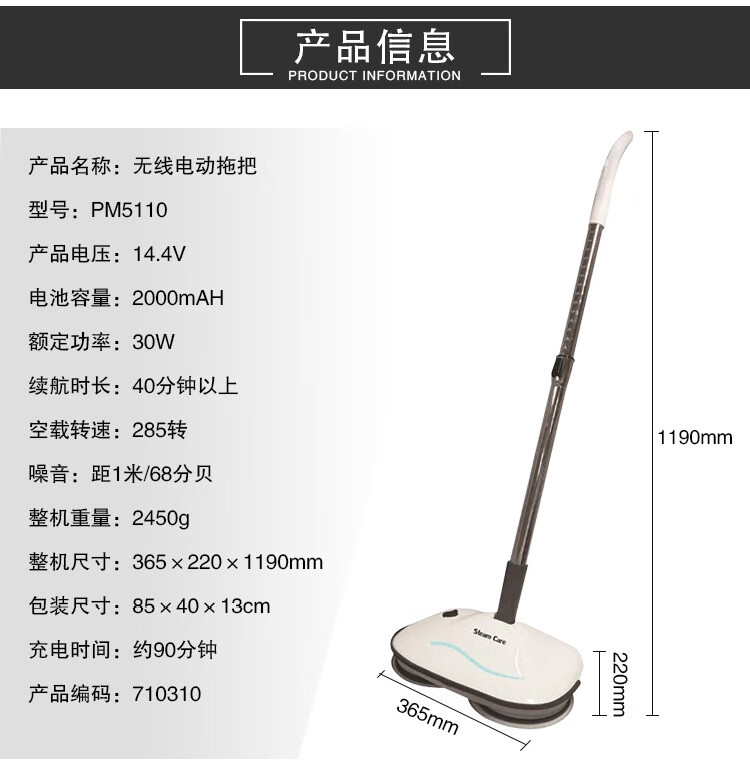 SteamCare 蒸汽宝智能擦地机无线电动拖把干湿两用扫拖一体清洁机PM5110