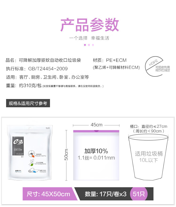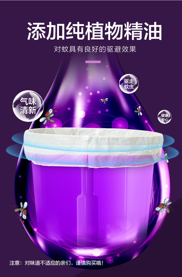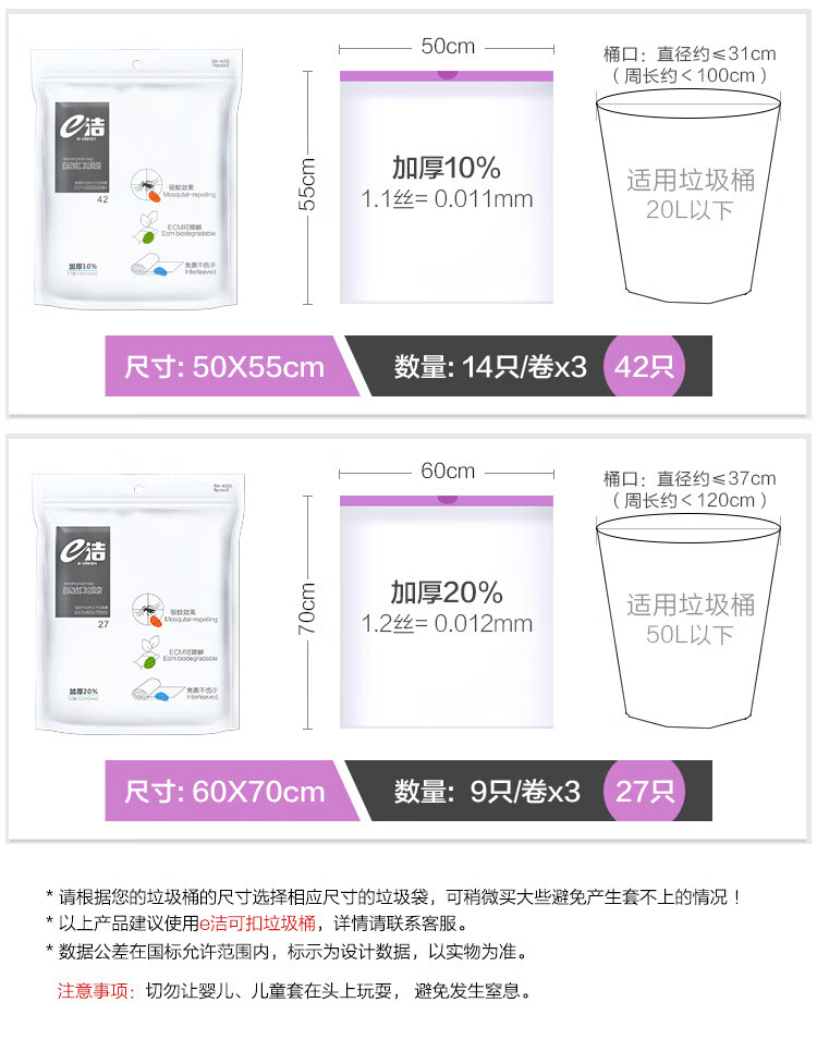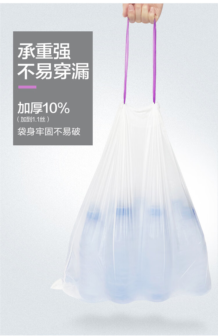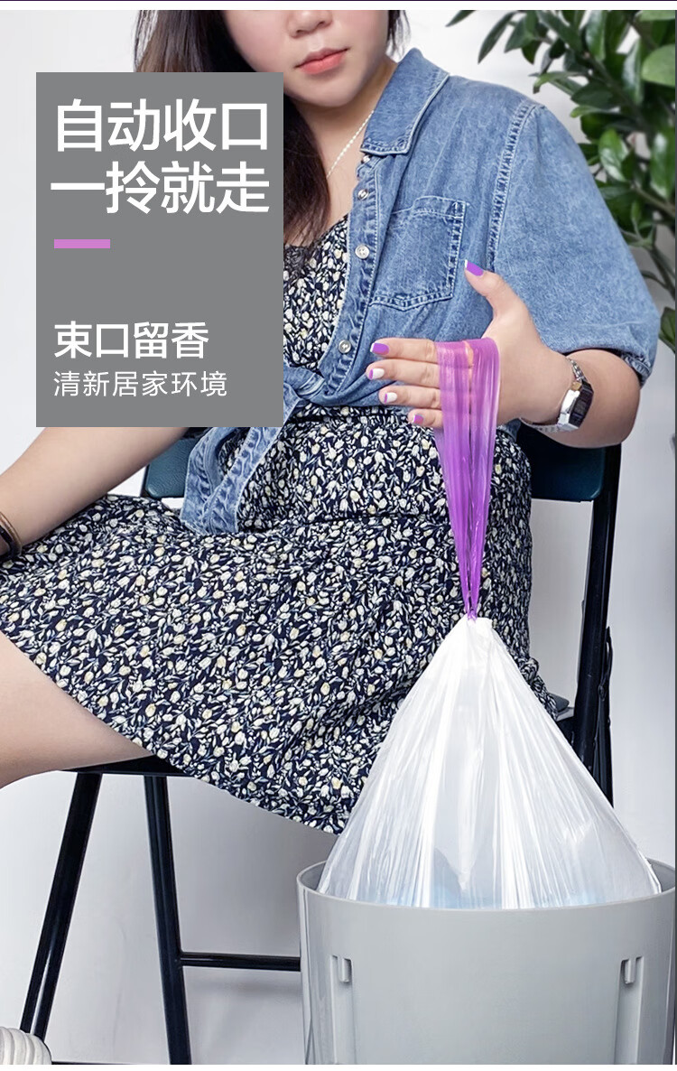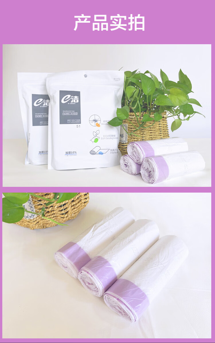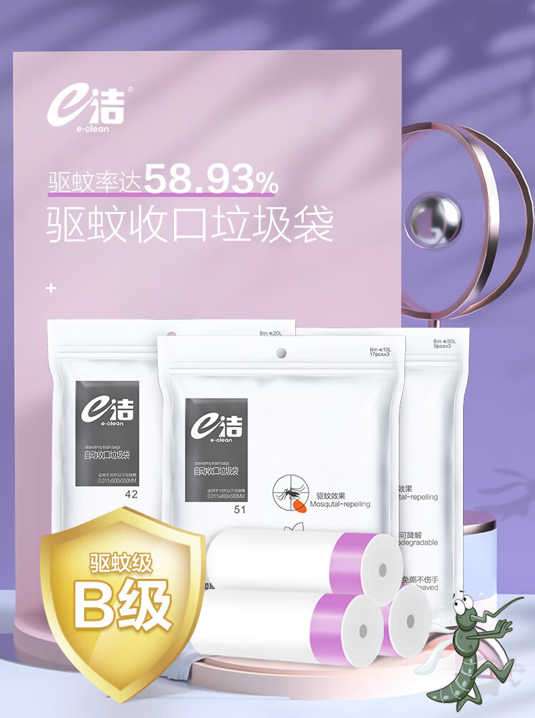 e洁 驱蚊去味垃圾袋 可降解自动收口厨卫抽绳手提塑料袋 加厚特大号 60*70*1.1丝 DT126070-27 共27只