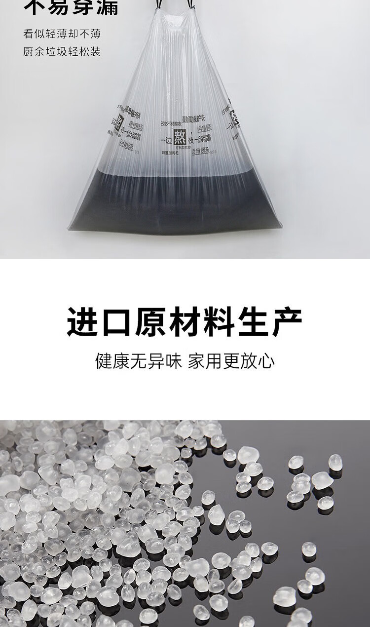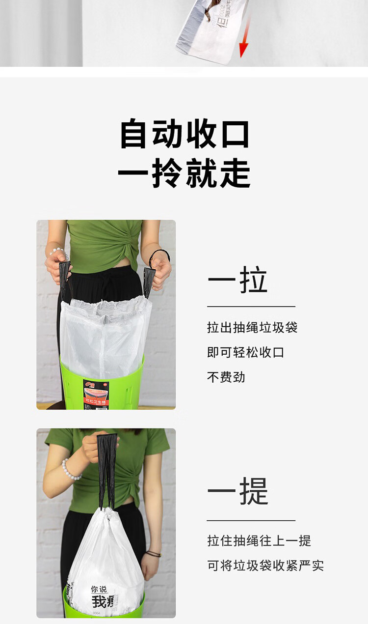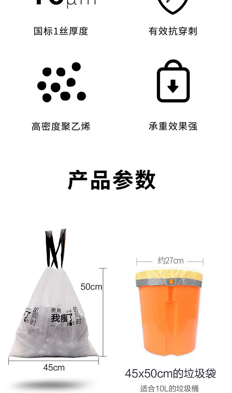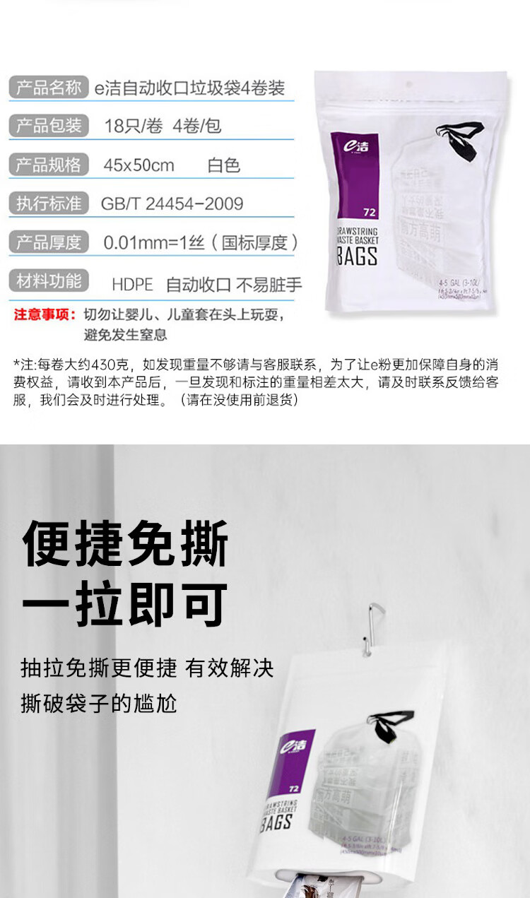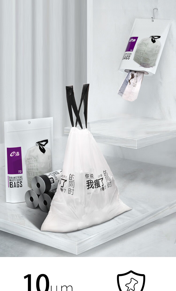 e洁 8DT104550-72 手提垃圾袋小号抽绳式加厚垃圾袋白带黑绳4卷/包45*50*1丝 两包装
