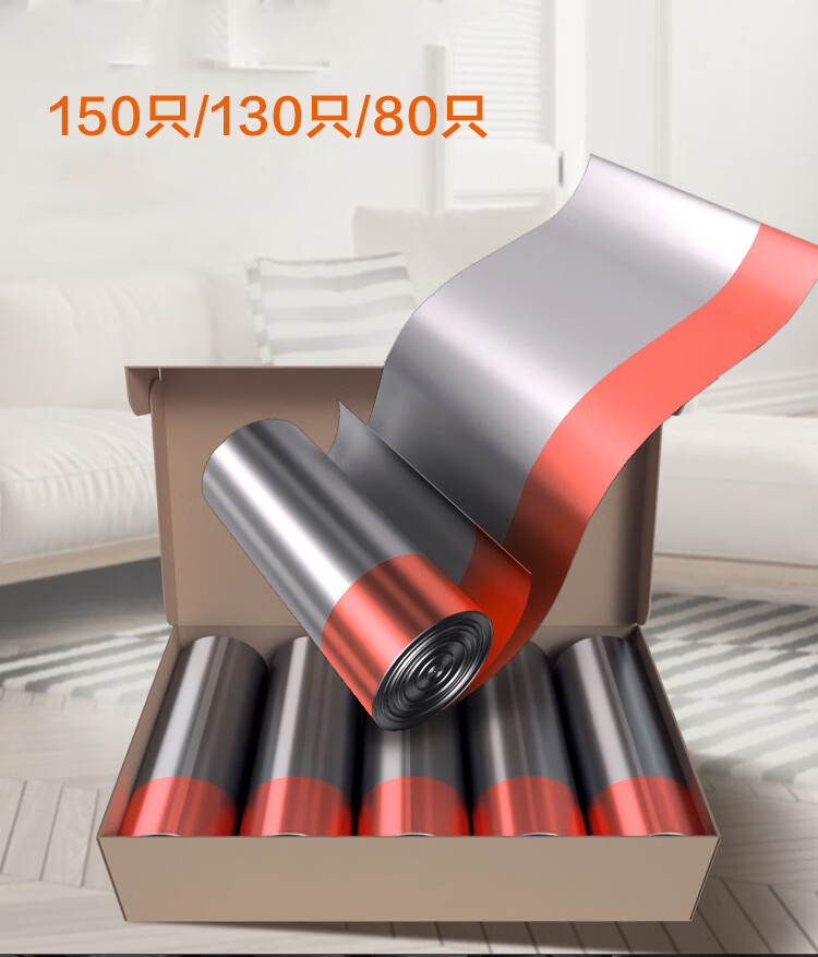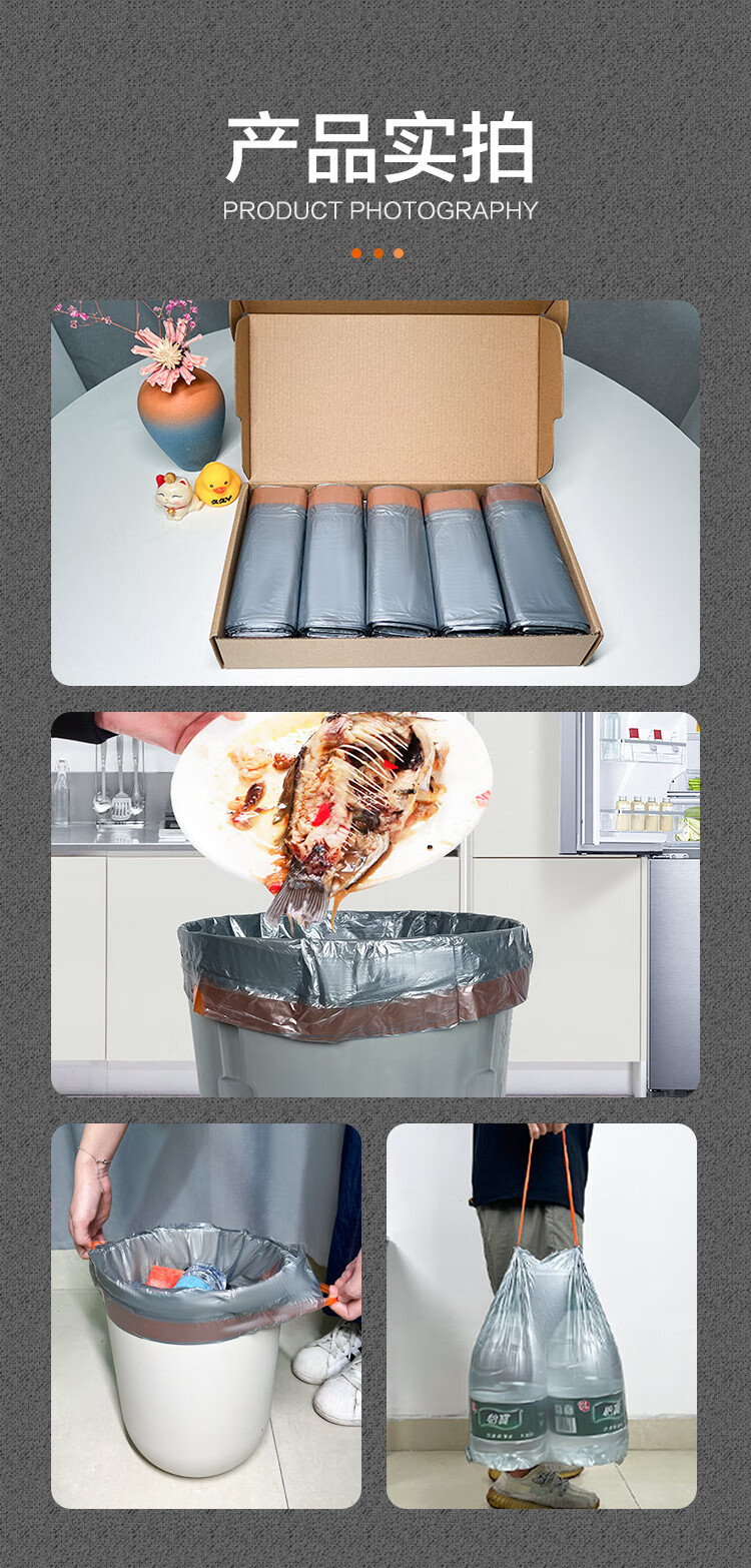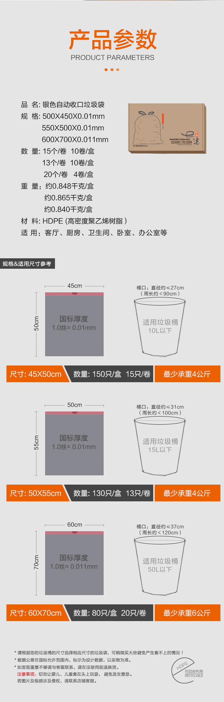 e洁 DT104550-150 抽绳垃圾袋 办公室客厅自动收口大号加厚塑料袋 银色 1丝 45*50cm 150只/盒