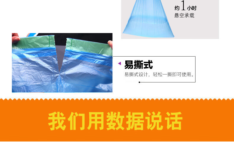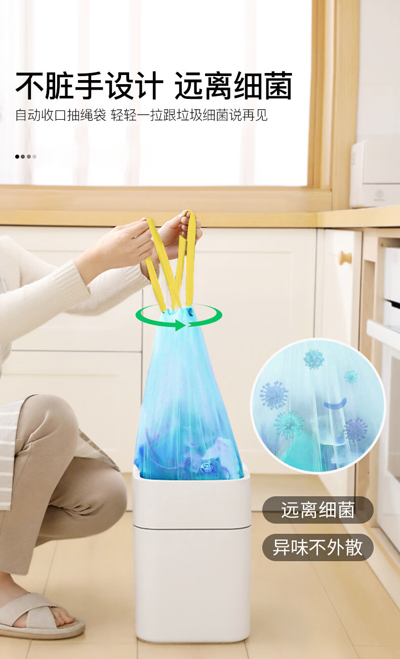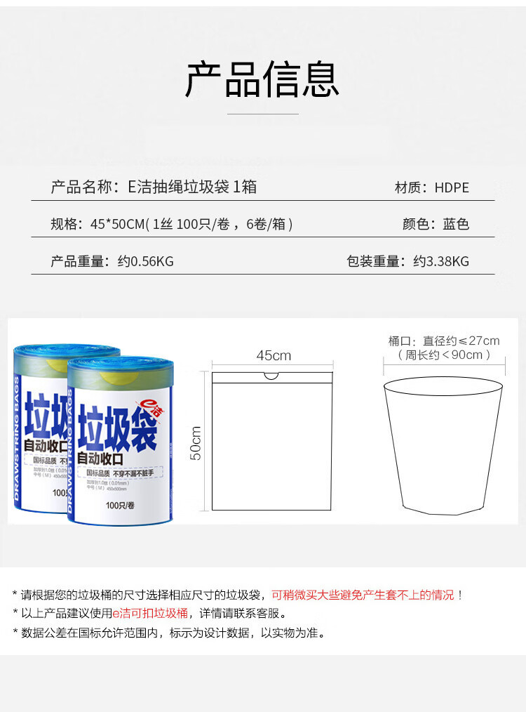 e洁 抽绳垃圾袋 DT104550-100 蓝色 45*50cm 100只/卷*6卷*1箱