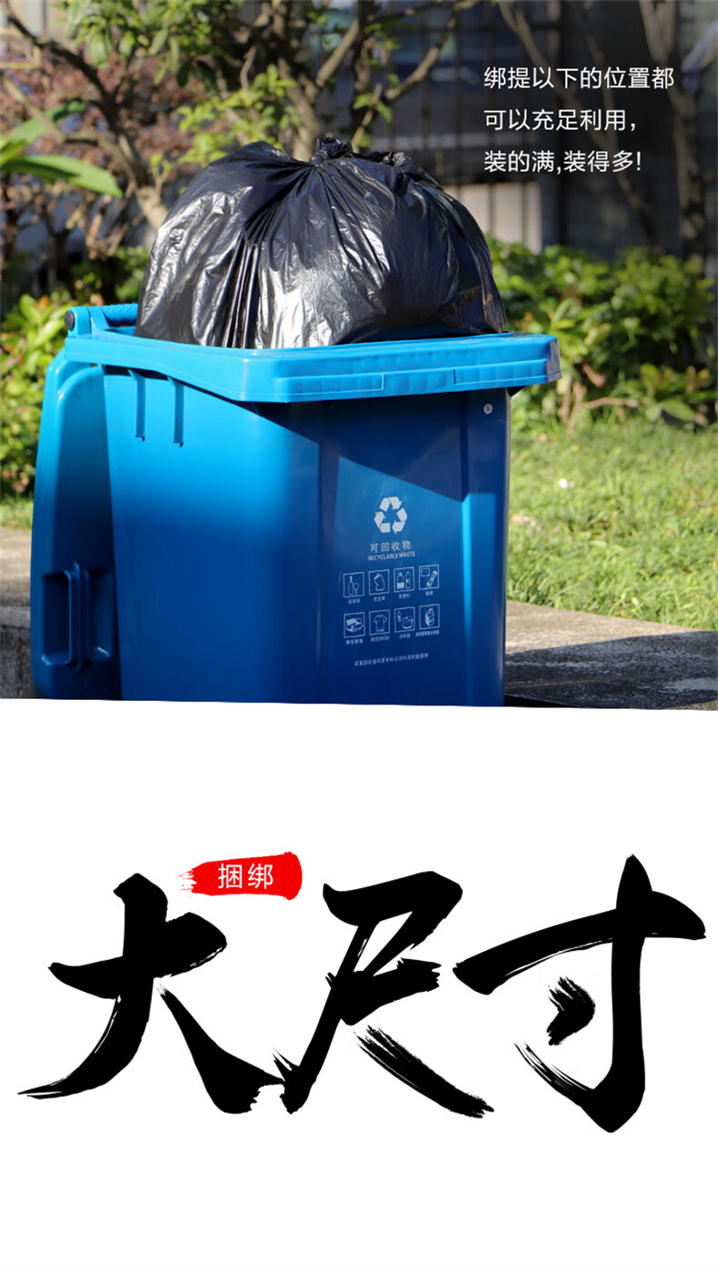 e洁 UT17120140-10BK-C 垃圾袋 商用酒店环卫大号加厚可捆绑塑料袋 双面3.4丝 黑色 120*140cm 10只/卷*2卷