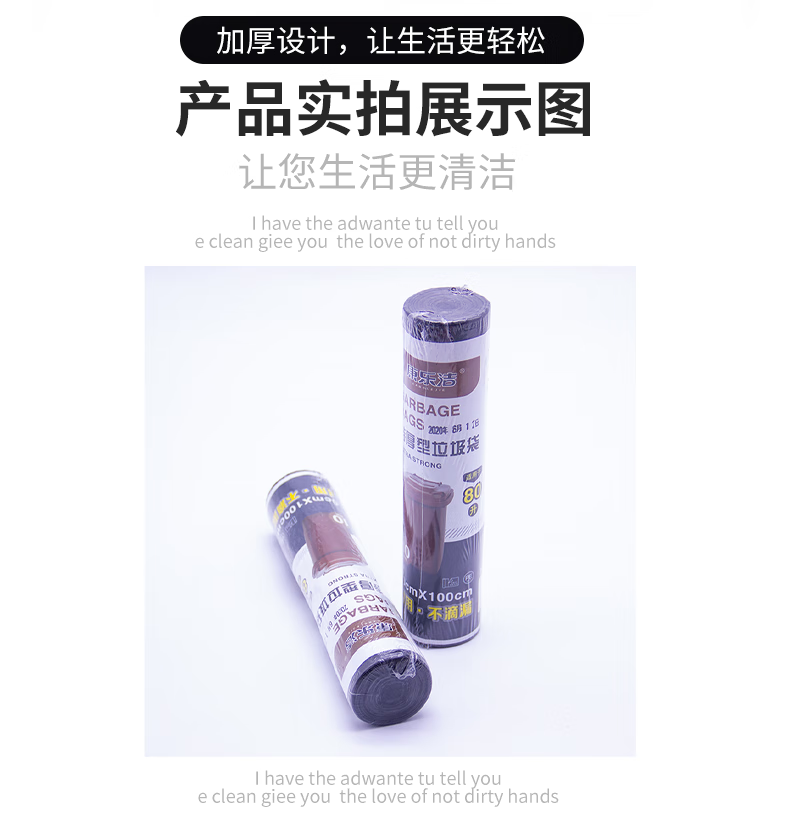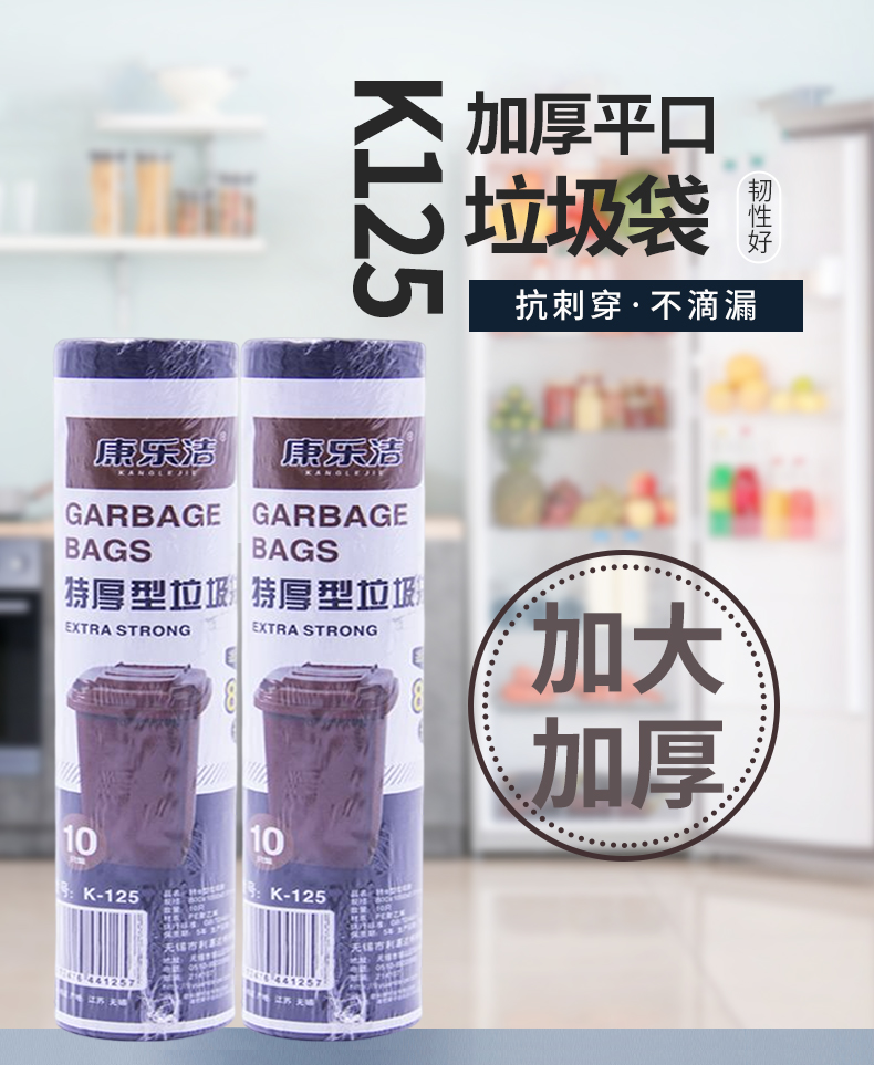 康乐洁 K-125 大号加厚平口垃圾袋物业环卫塑料袋 80*100cm*10只
