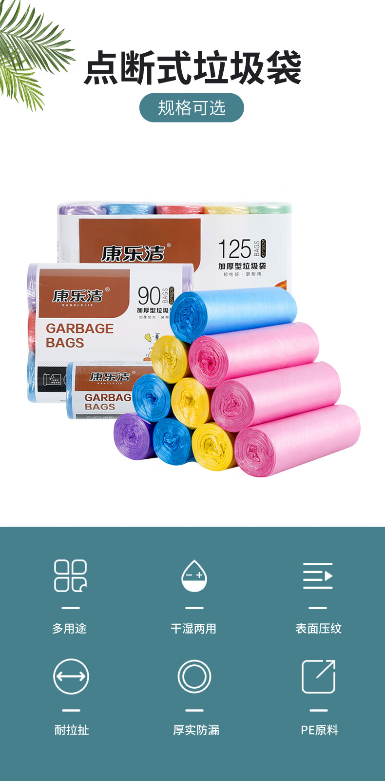 康乐洁 K-105 平口垃圾袋厨房办公室加厚一次性塑料袋 45*50cm 125只 颜色随机