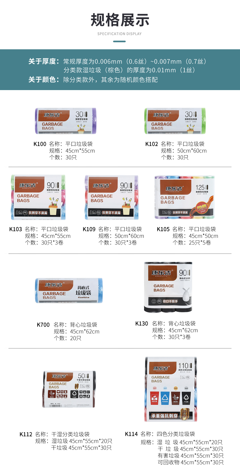 康乐洁 K-112 干湿分类垃圾袋厨房办公室加厚一次性塑料袋 45*55cm 50只