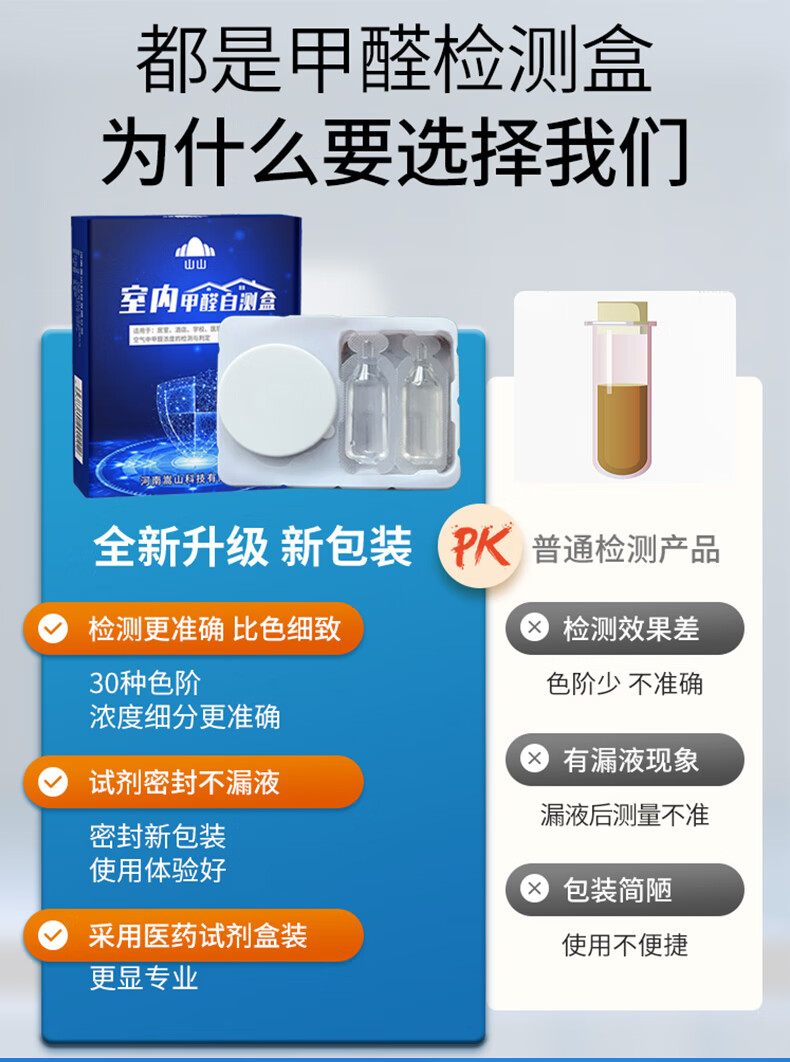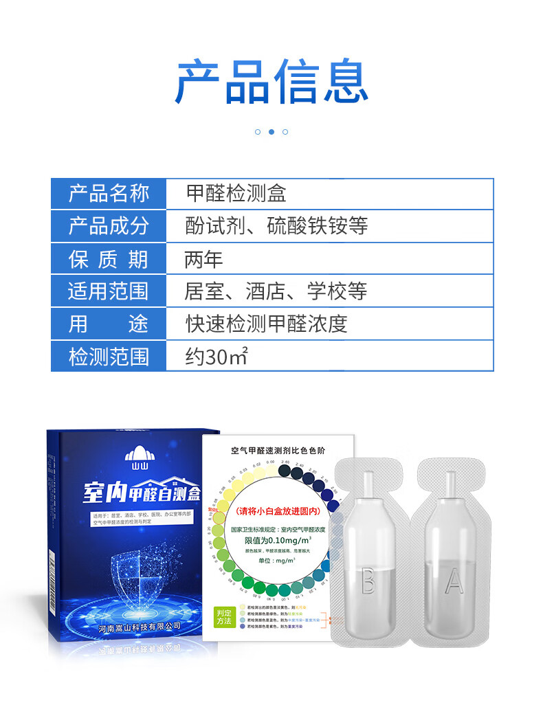 山山 甲醛检测盒 1盒装 空气质量自测盒一次性试纸新房装修入住专业快速精准检测 WSX0035