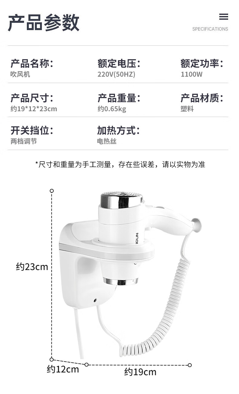 莫顿 壁挂式吹风机 白色 M-1288L-1