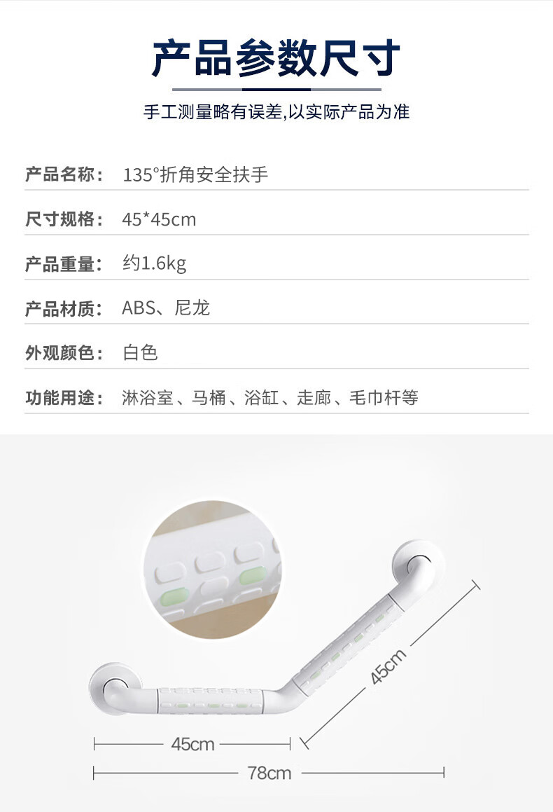 莫顿 135°折角安全无障碍扶手 白45×45cm M-9952-3