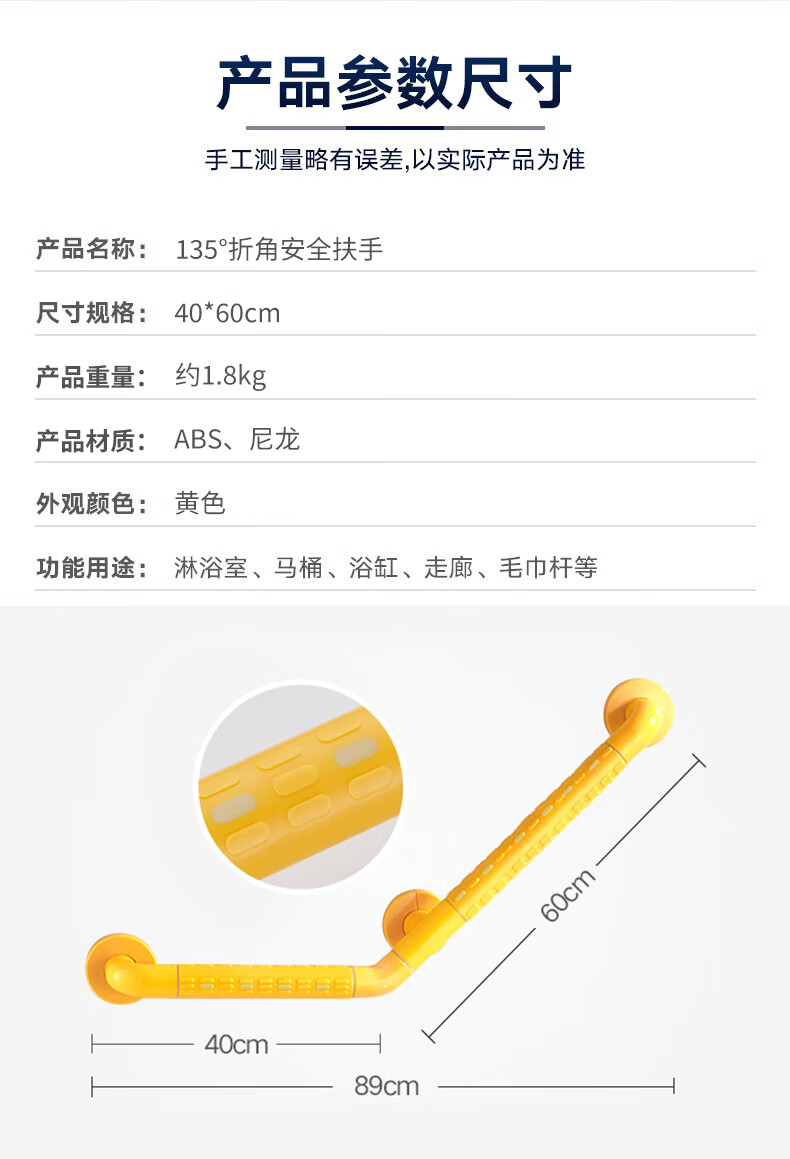 莫顿 135°折角安全无障碍扶手 黄40×60cm M-9952-3